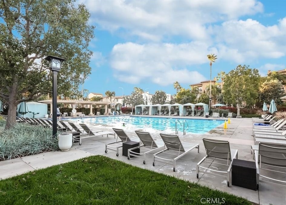 Open floor plan, gorgeous views of mountains, & treetops overlooking a quiet courtyard. Large kitchen, oversized balcony, wood shutters, central air, gas fireplace, inside laundry, ample storage with large closets & large master bedroom. The unit has an extra storage closet, storage racks & side by side parking. Community amenities include a clubhouse, gym, spa, Olympic-sized pool, 7-acre sports park, toddler parks, dog parks, tennis & basketball courts & a soccer & softball field. L.A. Public library 2 blocks away & K-5 elementary school within 3 blocks. HOA includes high-speed internet, basic cable & a security system. Buyer to Pay the one time community enhancement fee of . 75 % of sales price. This is a Mello Roos Community.