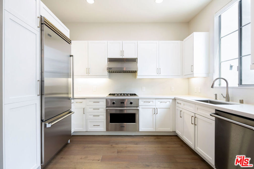 Beautifully-updated and elegant townhome in the sought-after Bridgeway Mills community. Step into a bright, open-concept living space with soaring ceilings, where industrial elements like exposed beams and ductwork are balanced by warm wood flooring and transitional styling throughout the home. Enter directly from your private over-sized 3-car garage, or walk up from the street past your large private front patio for a true urban feel. The main level offers a spacious great room with a generous living area, and a dedicated dining space with front and rear facing windows for great natural light. The completely renovated kitchen features new cabinetry, sleek quartz countertops and backsplash, and top-of-the-line Viking appliances, perfect for both everyday living and entertaining. Upstairs, two good-sized bedrooms, the front one with a private balcony, share an updated bathroom with quartz countertops and stylish tilework. The top-level primary suite is a private retreat with a large deck and fireplace, a luxurious bath with dual sinks, a separate shower, and a spacious walk-in closet. Enjoy all the lifestyle perks Playa Vista has to offer, including two fitness centers, swimming pools, multiple parks and playgrounds, Whole Foods, Cinemark Theater, popular restaurants, boutique shopping, fitness studios, and easy access to LMU, Silicon Beach's leading employers, LAX, and the beach.