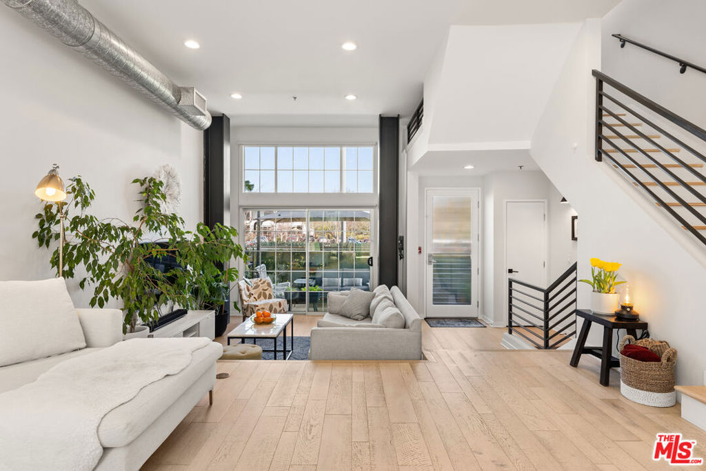 Tri-level townhome nestled in the coveted Bridgeway Mills community of Playa Vista. Featuring soaring ceilings, exposed beams and ducts, and sleek hardwood floors, this stunning architectural townhome blends modern industrial design offering a rare combination of style, comfort, and functionality. The open-concept floor plan includes two spacious bedrooms, a loft perfect for a home office, and 2.5 bathrooms. The primary suite is a serene retreat with a remodeled, luxurious en-suite bathroom, while the gourmet kitchen is a chef's dream, boasting extended stone countertops, a wine refrigerator, and top-of-the-line stainless steel appliances. Natural light pours in through oversized windows, elevated by custom window coverings, creating a bright and inviting ambiance throughout. Designed for both privacy and entertaining, this home features a ground-level gated patio, a stunning rooftop deck with an outdoor fireplace, and breathtaking sunset views over Los Angeles. The rare direct-entry 3-car private garage is a standout feature, offering an EV charger, home gym, storage, and a dedicated laundry area. Situated in the vibrant Playa Vista community, this home provides easy access to tech hubs, trendy dining, boutique shopping, and lush parks, all just moments from the beach. HOA dues include water, trash, cable TV, and internet. Experience the best of Silicon Beach living in this exceptional townhome. Don't miss this one-of-a-kind opportunity, schedule a private tour today!