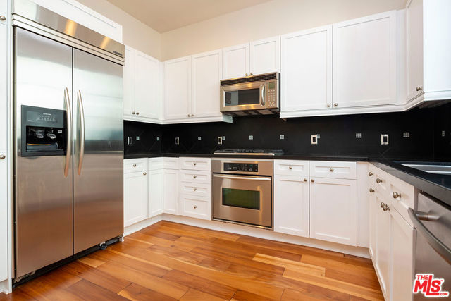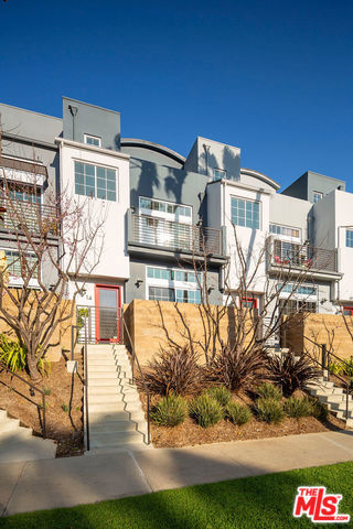 Stunning West-facing townhome in upscale Bridgeway Mills. Loft-style living with high ceilings, open floor plan & exposed ductwork give this home a sophisticated New York feel. Park in your private 3 car garage with extra room for storage or enter through your own front door. Sun drenched main level has wood floors throughout large living+dining areas & well-equipped kitchen featuring ample cabinetry, honed granite countertops & stainless steel Kitchen Aid appliances. Powder room & large front patio on main level. Second level has guest bedroom & full bathroom along with open loft that is currently being used as a lounge+office area with built-in desk & shelving, but could easily be enclosed to make a 3rd bedroom. Master retreat on top level with cathedral ceilings & large West-facing balcony to take in amazing sunsets. Master bath features walk-in closet & dual sinks with limestone countertops. Enjoy access to all Playa Vista amenities, restaurants, Whole Foods, movie theater & more!