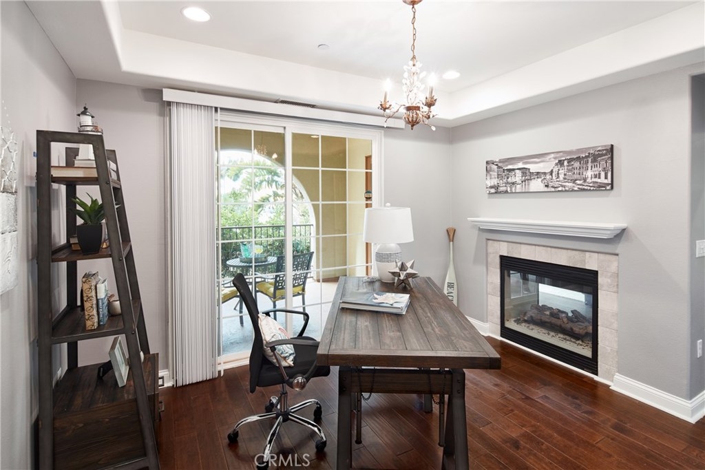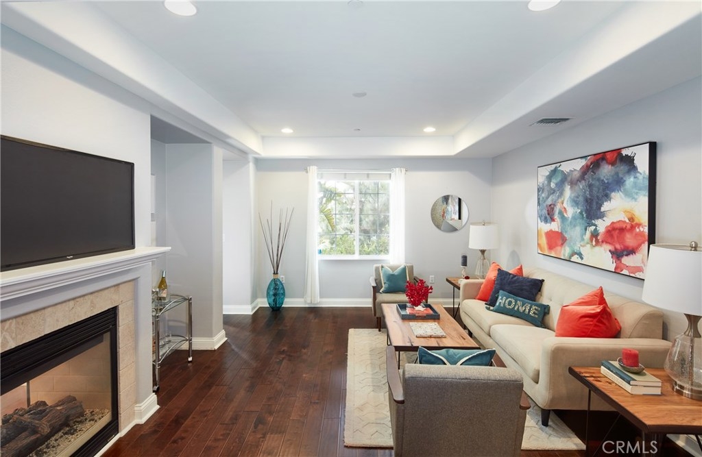 Welcome to this rare phase 1 - 1,860 square foot 3 bedroom 2.5 bathroom two story town house style uniting the Carabela Building. Situated at the end of the Augustine Place Cut De Sac unit 121B is what we refer to as “Turn Key”. walking distance to Concert parks and many of the Playa Vista amenities. The main level consists of open floor plan, living, dining, kitchen space as well as a bedroom and 1/2 bathroom. The hardwood floors and paint colors in the unit are very inviting and make you feel comfortable while inside. The two sided fireplace is a wonderful feature for both the main living room and the first floor bedroom/office. The outdoor patio is accessed from both the living room and main floor bedroom. The master suite features an over sized master bath and walk in closet. The laundry room is on the second floor near the bedrooms.