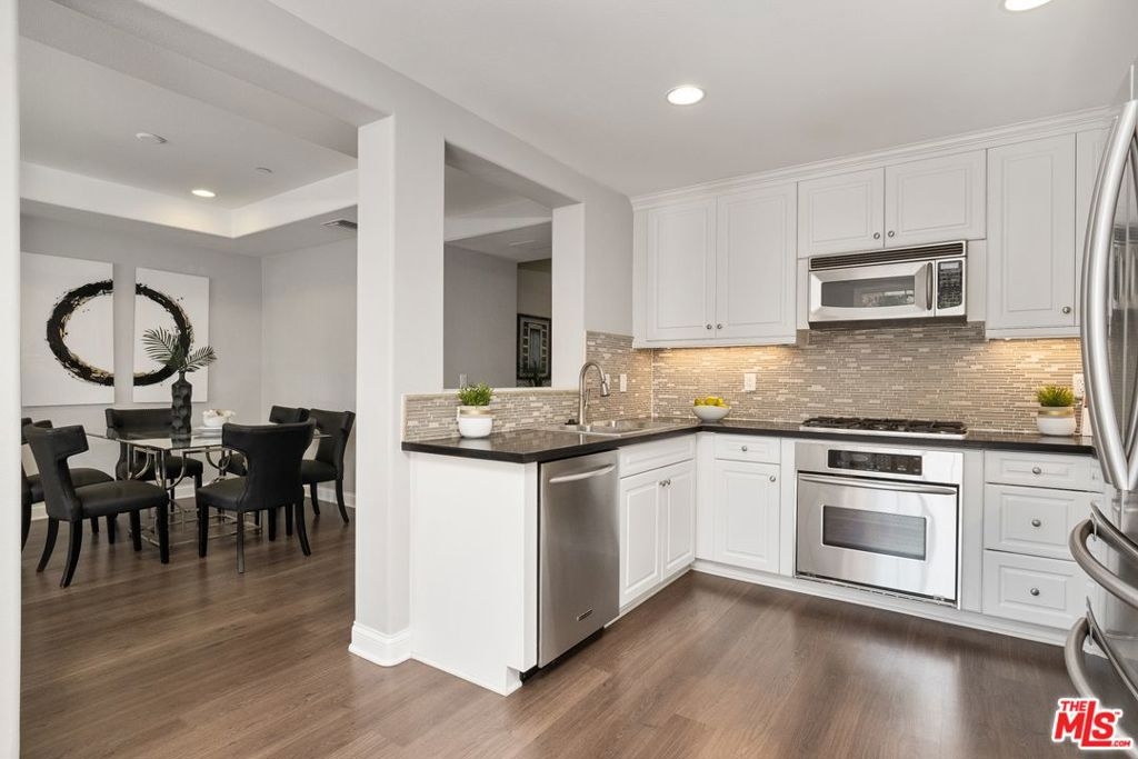 Luxury awaits you in this gorgeous top floor, two-level remodeled condo that boasts 1,420 sq ft of living space. The open floor plan has spacious living and dining areas, high ceilings, recessed lighting, and great west-facing windows that bring in the afternoon/evening sunlight. The inviting kitchen is remodeled with abundant storage, stainless steel appliances, black quartz countertops and custom white cabinetry. A balcony opens off the kitchen and provides a great space for barbecuing or simply relaxing. The two bedrooms upstairs each have their own en-suite bath and the master bedroom ensuite has a deep soaking tub, a separate shower, two separate vanities and a large walk-in closet. In-unit laundry, side by side parking and dual HVAC zones add to the comfort and ease of living. Incredible walkability with gyms, parks, pools, playgrounds, dog parks, a wonderful school system, restaurants and Whole Foods all within blocks. HOA includes high-speed internet, cable & package concierge.