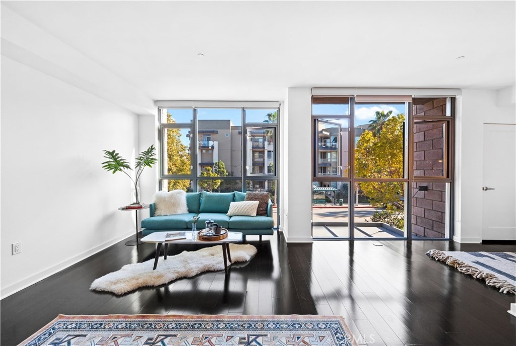 Welcome to this sophisticated two story, end-unit condo located in the Concerto Lofts building in the heart of Playa Vista! Floor to ceiling windows create a light-filled space perfect for living and entertaining. The first floor includes a modern kitchen with stainless appliances, brand new light fixture, guest bathroom and a wide open, versatile living space. Proceed up the concrete stairs to the stunning and massive second floor master bedroom which features hardwood floors, a work area, a sitting area and even the perfect alcove to practice yoga, meditation or ride your Peloton bike! The master bathroom has double sinks, a large, frameless glass-enclosed shower and a water closet. Conveniently located between the master bathroom and the custom walk-in closet is the stackable washer/dryer. Want some fresh air? Just outside the living room is a large patio with room for a BBQ, dining table and chairs. Includes 2 tandem parking spaces in underground garage. Enjoy the wonderful amenities of the Playa Vista community including a beautiful pool, spa, tennis and basketball courts, fitness center, playground, trails, dog park, shops and more.