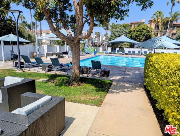 Step into Luxury in the most desired Playa Vista Neighborhood with all of the amenities of a Luxury Hotel. This stunning 2-bedroom, 2-bathroom, single-story condo corner unit. Tastefully designed home boasts a bright, open layout, seamlessly connecting the gourmet kitchen, dining area, and living room adorned with custom built-ins. The gourmet kitchen features exquisite stone countertops, premium stainless steel appliances, ample cabinet space, and a versatile area ideal for a desk, office, or breakfast nook. Your spacious private patio perfect for a BBQ, entertaining guests, or unwinding after a long day. Both bedrooms in this exquisite condo are ensuite and generously sized, each featuring spacious walk-in closets. The primary bedroom offers a haven of comfort, complemented by a luxurious bathroom with dual vanities, a separate walk-in shower, and a soothing soaking tub. In unit laundry closet is equipped with a stacked washer and dryer, along with additional cabinet space. The unit includes two parking spaces and extra storage. Residents enjoy access to an array of premier amenities, including the Center pointe Club pool and fitness center, The Resort, tennis courts, Concert Park, Runway Retail Center, and so much more. Embrace the vibrant Playa Vista lifestyle with unparalleled convenience and luxury at your doorstep. Also for Lease. All material presented herein is intended for information purposes only. While this information is believed to be correct, it is represented subject to errors, omissions, changes or withdrawal without notice. Broker and Broker's agent(s) do not represent or guarantee accuracy of the square footage, bedroom/bathroom count, lot size or lot dimensions, permitted or un-permitted spaces, school boundary lines or eligibility, information obtained from Public Records or other sources or other information concerning the conditions or features of the property provided by the seller or obtained from public records or other sources. Buyer is advised to independently verify the accuracy of all information through personal inspection building permits and/or with appropriate professionals (i.e. attorney, appraiser, architect, contractor, etc.). and with appropriate professionals to satisfy themselves. EQUAL HOUSING OPPORTUNITY.