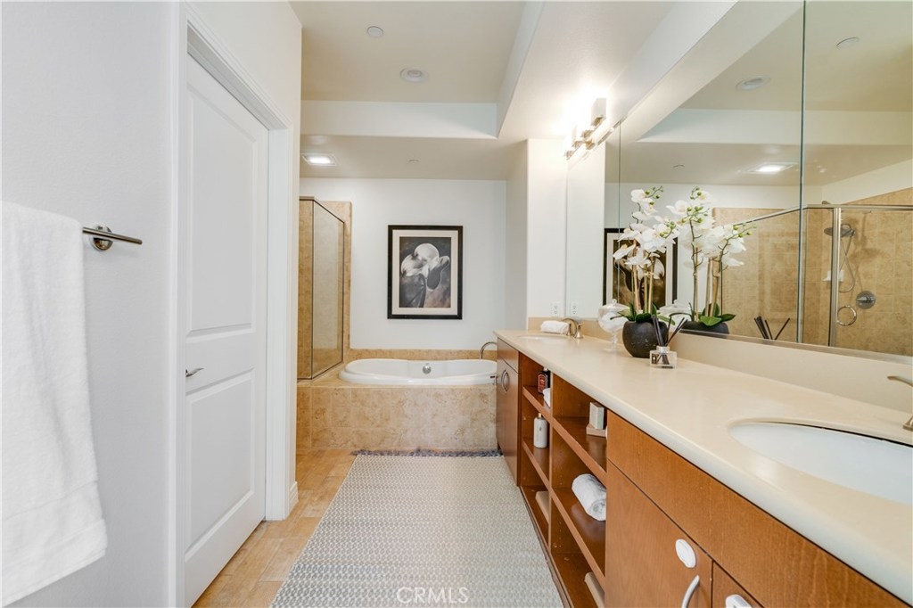 Close to the Beach! This corner unit is just a beauty! Come and be ready to move right in. This 2 bedroom 2.5 bath (3 bedroom per public record, downstairs office area is counted as one bedroom) comes with lots of natural light. There are wood floors upstairs and tile floors downstairs. The bottom floor has a large kitchen with stainless steel appliances, quartz counter tops and tons of storage. There is a reverse osmosis water filtration system. There is additional storage under the stairs. The open concept makes for spacious entertaining. There is a room that can be used as a den or a third bedroom. There is an indoor laundry room that includes the washer and dryer. Upstairs you will find the master bedroom with an en-suite bathroom with dual vanity and a large walk in closet and it's own balcony. This home is also a smart home. On the outside there is a patio with a private walk up entrance. An elevator and parking area that comes with more storage and bike room. The Home Owners Association offers pools, 2 gyms, kids play area, tennis courts, business center, parks and event space. There is just too much to list. Enjoy your weekends close to home. There is shopping and eateries just down the street. The HOA offers free buses to shopping and the beach!
