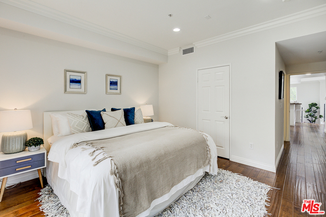Stunning 2-bd 2-ba 2-story condo has its own private entrance. The light filled open floor plan has soaring 18 ft ceilings, dramatic windows, & has been beautifully remodeled with wood flooring throughout, marble kitchen counters topped w/walnut, & modernly designed baths. The interior space is perfect for entertaining w/a sunken living room & 2nd level spacious dining room off an open cook's kitchen. Master suite & 2nd bedroom have access to a patio that overlooks a beautifully landscaped courtyard, along w/a private front balcony & a bonus storage space downstairs of 325 sq. ft.. Crescent Walk has its own fitness room, peaceful courtyard, fireplace lounges, & is conveniently located across the street from the Centerpointe Club where you can access the community pool, gym, business center, & Crescent Park. Just blocks from the new Whole Foods, CVS, Cinemark Theatre, The Resort, Concert Park, dining & more!