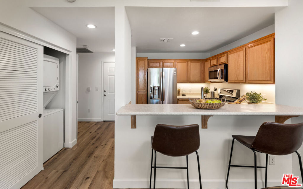 The perfect Playa Vista condo! This updated 1 bedroom 1 bath condo in Playa Vista has wood vinyl flooring throughout the bathroom, kitchen and living areas. New carpet in the bedroom, LED recessed lights throughout, NEST system, and a new paint job. Whether you are bringing on the day with your morning coffee or finishing it off with your afternoon grilling you can enjoy it from your private balcony as you take in the clear view of the bluffs. Grab your sneakers and towel to head to the Centerpointe Club pool and fitness center just right across the street or to The Resort. This home comes with 2 dedicated tandem parking spaces. A separate gym is located in the lobby for building residents. All Playa Vista amenities are ready for you, including parks, pools, gyms, restaurants, shops and more. Here's your chance to live the Silicon Beach lifestyle!