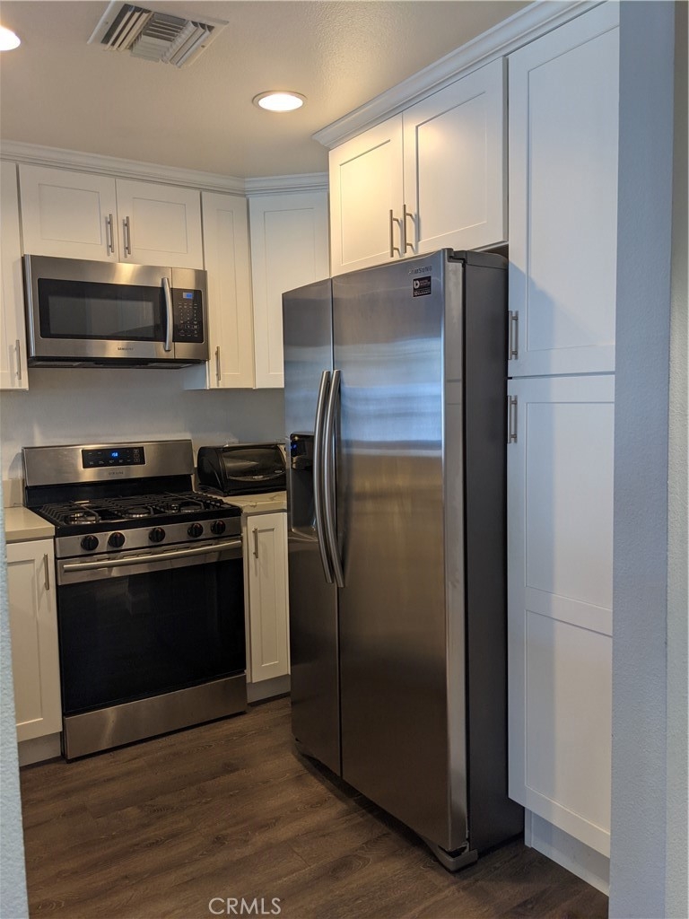 Live in coveted Playa Vista! Charming 1 bed/1 bath condo with almost $25,000 worth of UPGRADES, across the street from the CenterPointe Club with all its amazing amenities. Chic and contemporary second floor unit features the gorgeous kitchen remodeled just THREE YEARS AGO with quartz countertops, shaker cabinets and stainless steel appliances. Great room with beautiful NEWER laminate flooring (installed 4 years ago) has space for dining or office area. Living and bedroom access to the balcony with views of greenery so you can enjoy your morning coffee or evening wine! Bedroom features mirrored closet doors and a slider bringing in lots of natural light. NEWER window treatments, recessed lighting, brand NEW toilet in the spacious bathroom with linen cabinets, washer/dryer, coat/storage closet completes your little piece of paradise in Crescent Walk. Complex also boasts a state of the art gym, peaceful courtyard, lounges, bicycle storage room, lots of guest parking and EV charging stations. Steps to Crescent Park and library, walking distance to The Sports Park, Longwood Dog Park, The Resort, Runway and so much more. Easy access to local beaches, freeways, LAX, LMU. Don't miss it!