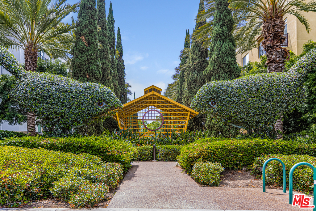 Beautiful sunny South-facing one bedroom overlooking Bird Park. An intimate bedroom features a balcony and large wardrobe closet. The living room is spacious with dining space and balcony access. Great open kitchen comes equipped with all the appliances. Other features include hardwood flooring, shutters, blinds, stack washer/dryer and two dedicated parking spaces in the gated garage. The building features a private gym and convenient location across the street from the CenterPointe Club, pools and library. Enjoy the nearby state-of-the-art fitness center and spa, the town center retail, restaurants, Cinemark Theaters, Whole Foods and much more. Easy access to LAX and beaches. Fabulous buying opportunity!