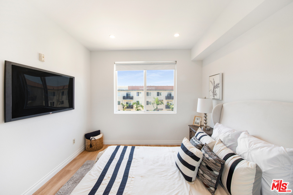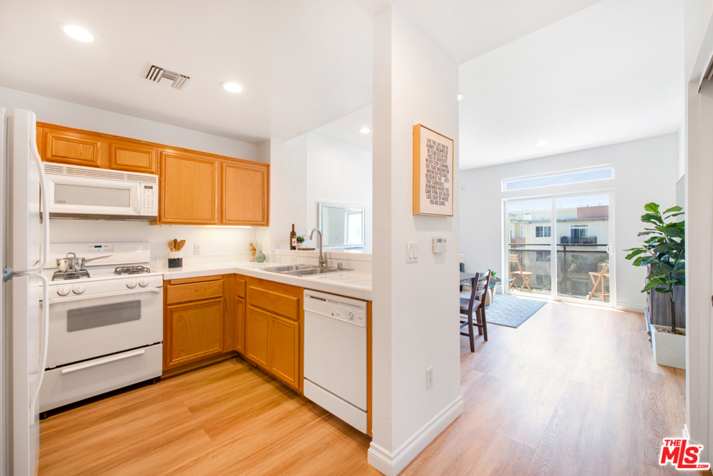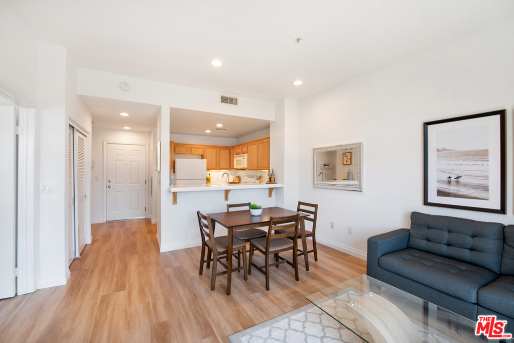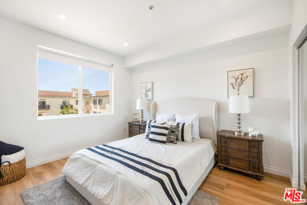 Tastefully updated Top Floor 1 bedroom 1 bath condo in Crescent Walk. Upgrades include new wood vinyl floors throughout . New LED recessed lights and New paint. Enjoy your morning coffee or afternoon grilling on your private balcony facing south towards the peaceful the courtyard. Grab your towel & go to the Centerpointe Club, pool fitness center right across the street. 2 dedicated tandem parking spaces. Separate gym located in the lobby for building residents. All Playa Vista amenities are included.