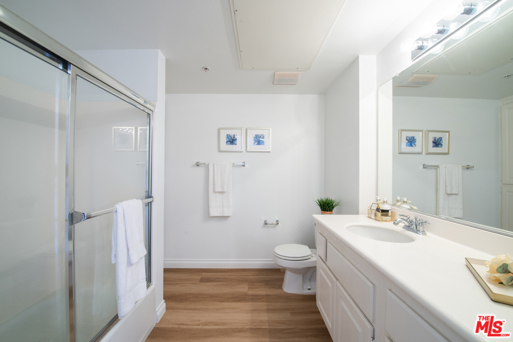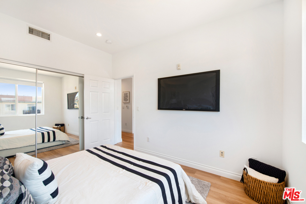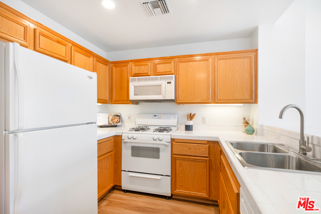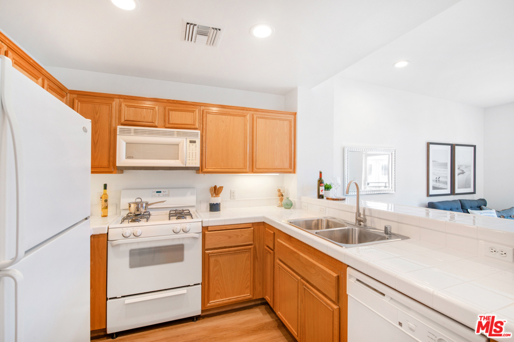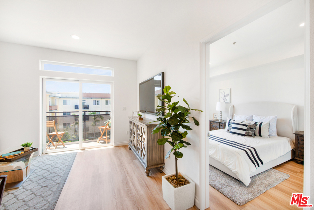 Tastefully updated Top Floor 1 bedroom 1 bath condo in Crescent Walk. Upgrades include new wood vinyl floors throughout . New LED recessed lights and New paint. Enjoy your morning coffee or afternoon grilling on your private balcony facing south towards the peaceful the courtyard. Grab your towel & go to the Centerpointe Club, pool fitness center right across the street. 2 dedicated tandem parking spaces. Separate gym located in the lobby for building residents. All Playa Vista amenities are included.