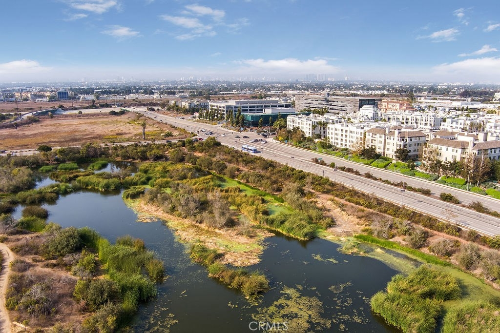 Spectacular VIEWS of the wetlands to the OCEAN, the Bluffs and the marina from this magnificent SINGLE LEVEL corner unit residence. Two balconies grant you quick and easy fresh air; or take your breakfast al fresco. Beautiful hardwood floors on a single level give you plenty of space for both furniture and free movement. Superior blinds operate with electronic control for the utmost in convenience. Enjoy the warming, see-through fireplace in the living room, shared with the enclosed den, which doubles as an office or third bedroom, complete with space-saving wall bed. The ceilings are high, the doors are heavy, and the laundry room door closes, all reinforcing your experience of the upgrades and thoughtful floor plan. Granite countertops and wine refrigerator with seating at the kitchen island means you will enjoy memorable moments with friends and family. Playa Vista amenities include access to pools and fitness facilities, library, parks and open space, and elementary school; with cable, high speed internet and water included in dues. Easy walk to The Village, with Whole Foods, Starbucks, CVS drugstore, Cedars clinic, movies and restaurants. Experience the gift of this superb residence all in one incredible location!