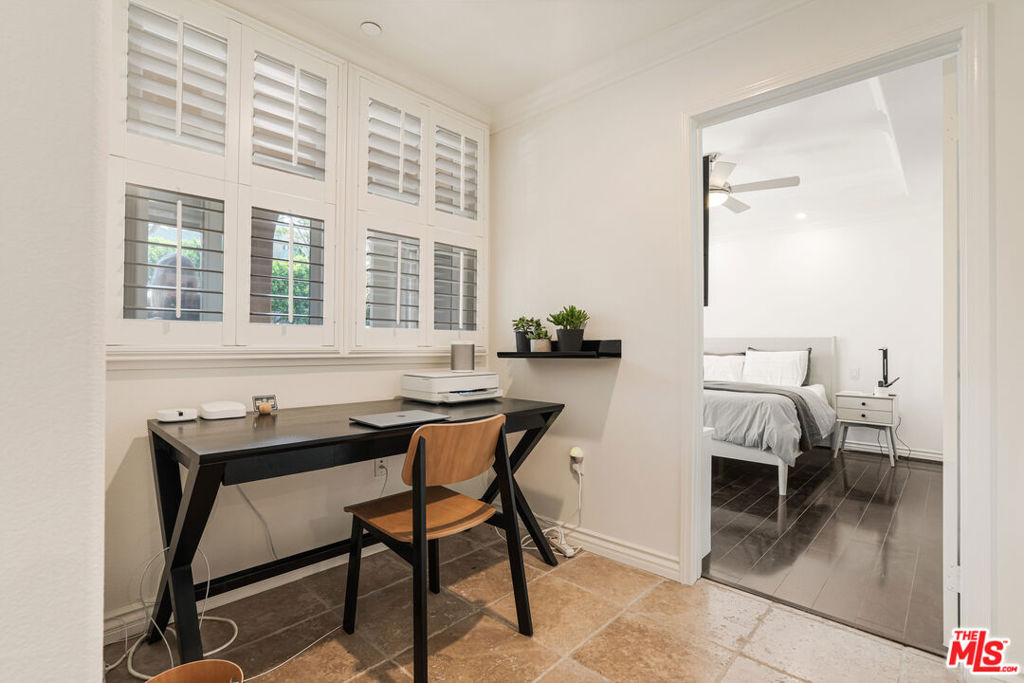 ****ORIGINAL PURCHASE PRICE $775,000. Buyer is an agent and put commission toward the final purchase price.**** Discover the ideal blend of comfort and style in this one bedroom plus office home, located in the sought after Esplanade at Playa Vista. Facing south and overlooking the serene and quiet street of Discovery Creek, this home is perfectly positioned for tranquility and natural light. Recently updated, the residence features a modern kitchen with pristine white cabinetry, new stainless steel appliances, and a layout that opens to a spacious great room and views of the quiet, tree-lined street. Enjoy the expansive patio, accessible from both the living room and bedroom, where you can unwind in privacy. The south-facing bedroom flows into a beautifully renovated bathroom equipped with a new walk-in shower, beautiful finishes, and dual vanities. Plantation shutters add a touch of elegance throughout the home. Additional amenities include a large storage cage in the building and two tandem parking spaces in a secure, subterranean lot. Parking spots include 220V electricity for charging. This home is a perfect blend of luxury and convenience, ideal for those seeking a peaceful retreat within a vibrant community. Fantastic location near everything Playa Vista has to offer! Close to the Playa Vista Elementary School, library and the Centerpointe Club's gym and pool. Nearby, Runway at Playa Vista is home to the Resort gym and pool, Whole Foods, Cinemark Movie Theater, HopDoddy, and so much more!