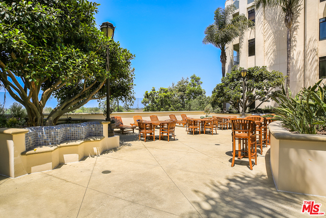 Welcome to beautiful single level 2 bedroom 2 bath condo in the prestigious Metro building. Located in the heart of Silicon beach, this quiet courtyard facing unit has a spacious open floor plan that features a formal entry, separate cozy dining area with a fireplace, rich well-maintained hardwood floors and elegant patios off of the dining room as well as the master bedroom, perfect for alfresco dining. Impressive master suite amazes with its size and has enough room for a full office in additional to bedroom set. This dramatic room has pristine en-suite bathroom with convenient dual vanity and travertine floors; as well as ready to use walk- in closet. This is A must see condo! Don't miss this opportunity!