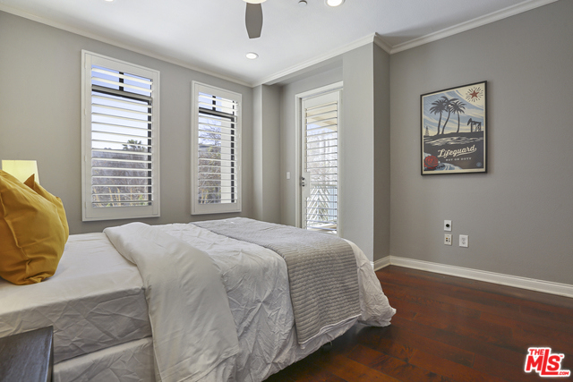 A true must see! Most sought after location for natural light and outdoor living space in the Metro building. This two-story west facing unit feels more like a townhouse than a condo and is as stylish as it is comfortable. The custom-built wood shutters are split-level adjustable to allow for complete privacy without compromising on natural light. Solid hardwood floors throughout are complimented by energy efficient recessed lighting and ceiling fans to offset the need to run the central A/C. The spacious master suite is a relaxing retreat complete with a large soaker tub and custom walk-in closet. The home features a gourmet kitchen, dining room and flex space which could be converted into a 3rd bedroom or used as a den/office/playroom. This unit has two sunlit patios, a rarity in Playa Vista, allowing for year round enjoyment of the view of Crescent Park. Quiet, and far removed from the noise of Lincoln and Jefferson.