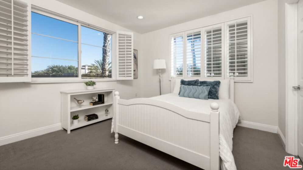 Premier penthouse style top floor, corner unit, with huge windows overlooking a park. 3 bedrooms +bonus open loft for home office or additional flex space. Enter on the living level and you are greeted by the natural light from 2 stories of windows. The open living room with fireplace leads to the formal dining and ultimately to the large kitchen with adjacent den. Distressed wood floors installed in 2019.Kitchen remodeled in 2021 with new counters and backsplash. The loft above the first floor is perfect for working from home, distance learning, or working out. The lower level is home to the three bedrooms and laundry area. The master suite has its own fireplace and large master bath with double vanities, tub and shower. Master bath also remodeled in 2021. Large walk in-closet completes the master retreat. Views to the Hollywood sign and the snow capped mountains. All of this in Playa Vista with access to parks, gyms, pools, movie theater, restaurants, shops, Whole Foods, bike paths to the beach, and more! Paraisos premier condo.