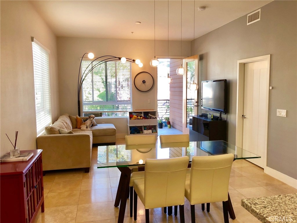 Prima Terra complex in the heart of Playa Vista. This well-maintained single level condo was a former KB HOMES model unit. More than $60,000 in builder upgrades like travertine floors, stainless steel appliances, granite counter tops, quartz bathroom shower stalls and sink counter tops, soft-closing kitchen cabinets, designer closet in master bedroom, and more. Corner unit allows more windows and bright natural lights. Open floor plan and high ceiling creates a spacious and wide open kithchen/dining/living room combination. Food preparation island with granite top & seating for 3. Balcony overlooks the greenbelt below. 2 side by side underground parking spaces (#3 & 4) are conveniently situated near the elevator (compare to tandem parking for other units). Just a short walk to Concert Park, Centrepointe Club, The Resort Pool and Fitness Center, Whole Foods, Cinemax, and some of the finest restaurants and diners in town. Seller is motivated - eager to negotiate with serious and pre-qualified Buyers! If you are aspiring to live in this glamorous community, your opportunity has arrived. Call now, let's make a deal !!!