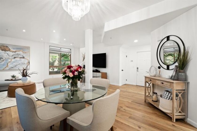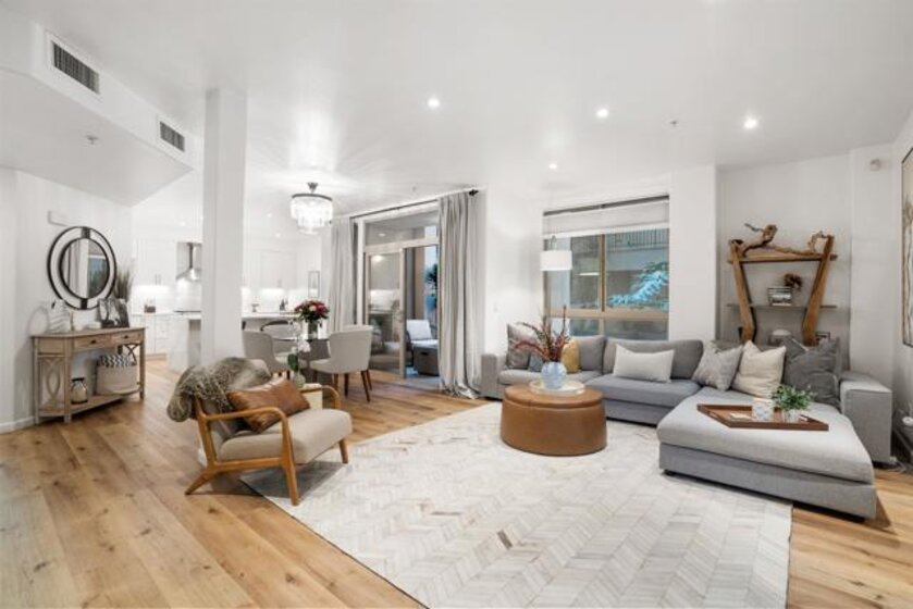 Sellers will consider backup offers. Welcome to LA’s most desirable community development, Playa Vista! Just 2 miles from the beach, Playa Vista is where tech meets open space, recreation, entertainment, shopping, dining, and community. We are pleased to offer Promenade #129, a modern coastal contemporary split-level condominium, which is one of the largest in the area at 1,819 sq ft. This unit has been intricately renovated top-to-bottom with every detail in mind and no expense spared, everything in the unit is brand new! Conveniently located near Phase I restaurants, parks, and sports courts, walk into the expansive open entry floor created for entertainment and relaxation. The Chef’s kitchen was built to indulge – at 81” x 42” the African Namib Fantasy marble waterfall island is a must see! The matching glass marble backsplash, 6-burner gas Fulgor Milano Italian stove, powerful range hood, dual temperature wine fridge, reverse osmosis water filtration system, and Bosch / LG / Samsung appliances throughout, this kitchen boasts expansive counter space and ample storage (including full pantry, soft close cabinets and drawers, lazy susan, and extra deep drawers). Enjoy expansive 9’ ceilings, an enlarged living room and dining area that opens up to a large patio for entertaining, BBQ, and plenty of plants to admire. The conveniently located downstairs powder room is expansive and includes a custom built-in hidden washer/dryer with Quartz countertop folding station. With luxury enlarged vinyl flooring throughout, walk upstairs to the second level, boasting an open layout den (10’ x 17’) centered between 2 master-size bedrooms with custom built in closets, chandeliers, and beautifully remodeled carrara marble bathrooms! Enjoy recessed ceiling lights and several windows throughout, dual-rod dramatic drapery, cordless honeycomb shades, dual HVAC systems, ample storage (5 closets) and 2 individual parking spaces near each other in the secure subterranean garage! EV chargers to be installed this year. Life in LA does not get better than this! Everything in Silicon Beach is just a walk away – Google, Facebook, Youtube, IMAX, LMU, Wholefoods, Starbucks, Cinemax movies, top-rated elementary school, tech forward middle school, top-tier dog parks, restaurants and more! This beautiful community has it all – 25,000 sq ft of pools, spas, state-of-the-art gym, and over 30 parks. This unit is conveniently located near both Concert Park and Runway shops and restaurants. Concert Park provides many outdoor activities including concerts, movies, beach parties, food trucks and more in the summer. Community HOA includes landscaping, internet, gyms, pools, parks, sports courts, dog parks, security system, security guards, and shuttles! Shuttles run regularly so that you can leave your car at home and quickly get around, although most locals enjoy walking and running down Bluff Creek trails. For more information on the property, visit www.promenade129.com For more information on the community, visit www.playavista.com