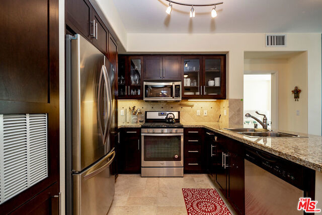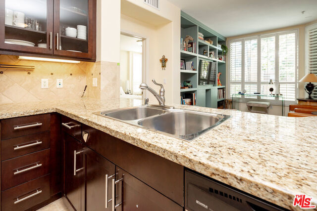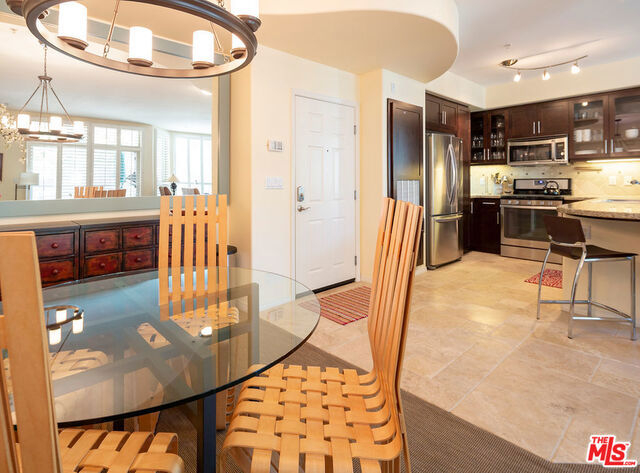 Awesome value meets attractive and smart living spaces in this stylish, single-level 2 bedroom condo in Promenade. Enter to a bright, West-facing great room with nearly a full wall of windows. To the left are newer built-ins with TV area and on the right is another living area with adjacent dining area. Watch TV or chat with your guests from open kitchen featuring a breakfast bar, granite countertops, mosaic backsplash, stainless steel appliances & Travertine tile floors. Large balcony, perfect for lounging or al fresco dining, spans nearly the width of the entire unit. Two bedrooms & bathrooms on opposite ends is great for privacy. Both bathrooms have double sinks and both bedrooms have walk-in closets. Quiet and convenient location within the Playa Vista community. Just a block from Concert Park and shops and short distance from numerous other parks, The Resort, Centerpointe Club, PV Elementary School, community library, Runway shopping area, Whole Foods, and Cinemark movie theater.
