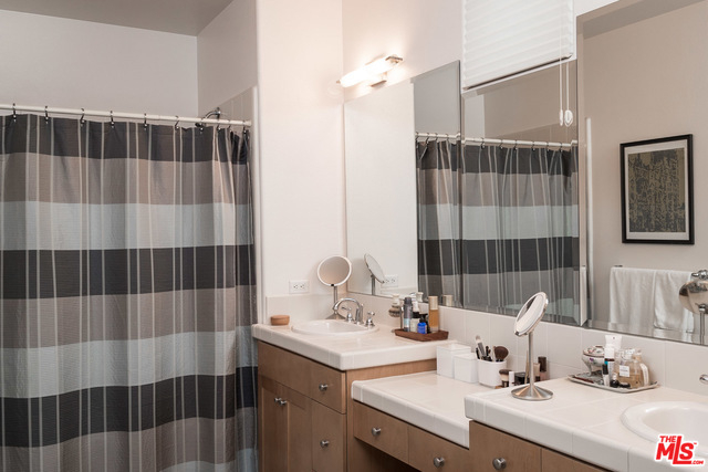 Modern and clean decorator-designed single level condo. Open floor plan with a large inviting balcony accessible from every room. Sense of openness and serenity.There are 2 bedrooms, separated by the living room/dining room. Master bedroom with en-suite bathroom and large walk-in closet and second bedroom with its own full bathroom, double sinks, and walk-in closet. Kitchen features granite counter tops and top-of-the-line appliances with an eat-at breakfast bar. Custom built-in entertainment center in media area. Laundry in unit. All Playa Vista amenities included. Restaurants, Whole Foods, Farmers' Market, Pinkberry's, and more, all within walking distance.This beautiful unit was worth the wait! Move-in ready.