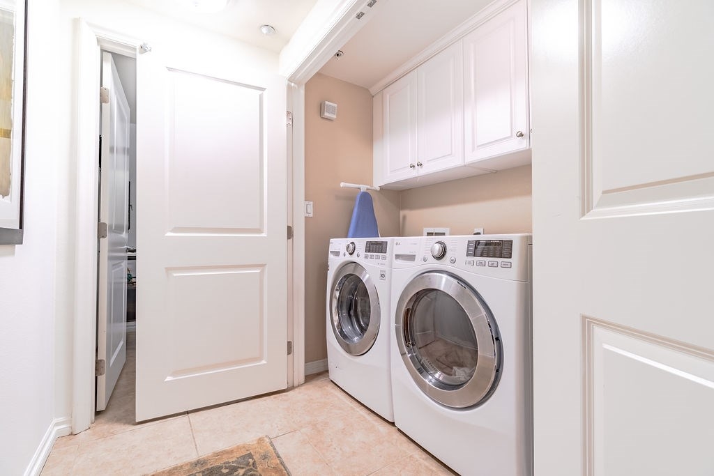 Spacious Serenade! Relaxation is easy with this comfortable corner unit residence conveniently located near side-by-side parking spaces. First level entry foyer opens into living room where you can just plop down at the end of a long day and enjoy the warming, see-through fireplace, shared with the adjacent dining room; with seating for six, chandelier, an attractive bar with granite countertop and wine refrigerator, enjoy memorable dinners with friends and family. Gather around the granite countertop kitchen island; plus additional dining area for four. Ceramic tile flooring on main level; with powder room, laundry closet, wraparound patio and storage. Artfully curved stairwell to second level master suite with wraparound balcony. Soothing master bathroom with soft touch travertine, soaking tub, and glass enclosed shower. Two sinks in both master suites with the third bedroom sharing the junior suite bathroom. Playa Vista amenities include access to pools and fitness facilities, library, parks and open space, and elementary school; with cable, high speed internet and water included in dues. Short walk to The Village, with Whole Foods, Starbucks, CVS, Cedars, movies and restaurants. This is your invitation to pleasurable moments in this fine home!