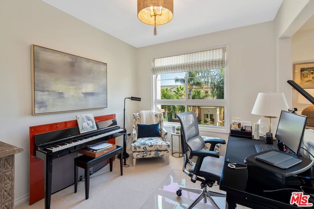 Rare opportunity to own a stunning, top-floor, corner unit overlooking all of Concert Park! This one-of-a-kind condo in the exclusive Serenade building has been beautifully upgraded and maintained by the original owner. This split-level layout has 3 beds & almost 2,000 sqft of living space. Its South/East orientation and park location provide for an abundance of natural light and privacy. Main level is an open concept and features a large living room w/fireplace, a dining room w/access to the wraparound patio, and a spacious side room that can function as a home office, den or 3rd BR. Chefs kitchen is well-appointed with Subzero refrigerator, SS appliances, custom butcher-block island and plenty of storage. Lower level features the two other bedroom suites & laundry closet. Huge master bed/bath with dual vanities, separate tub/shower and oversized walk-in closet! 2nd bedroom also en-suite. Additional upgrades include recessed LED lighting, designer window treatments, and built-in wall units in the bedrooms. This light and bright penthouse is move-in ready! Located steps from Concert Park and the Centerpointe Club, and all the other amenities Playa Vista has to offer!