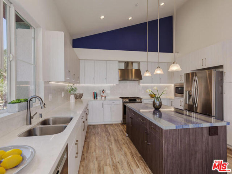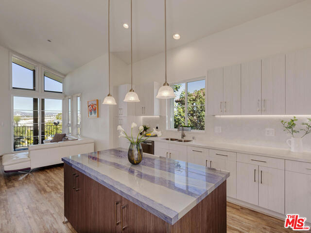 BEST PRICED home in Playa Vista! SPECTACULAR and SPACIOUS TOP FLOOR PENTHOUSE - Corner Unit w dramatic urban views stretching from Pacific Palisades to the Getty Museum + Hollywood Sign w a glorious mountain backdrop! Dramatic, soaring, 15' ceilings and tons of light welcome you into this fabulously open spaced home. Its great floorplan flows from the living room w its see-thru fireplace to the dining room and then to the exquisitely remodeled designer kitchen w its own den area. Downstairs you'll find a wonderful Master Suite w ensuite Spa Bath and wallk-in closet The 2nd and 3rd bedrooms share a dual sink bathroom w extra large shower. Unit offers only one shared wall! The upstairs features a fabulous LOFT for office, play area, game room, art hideaway...whatever you can imagine! Just 1 1/2 miles to the beach...and steps away from the boutiques, restaurants and recreational facilities throughout Playa Vista...This is truly a home where you'll feel you're living on vacation every day