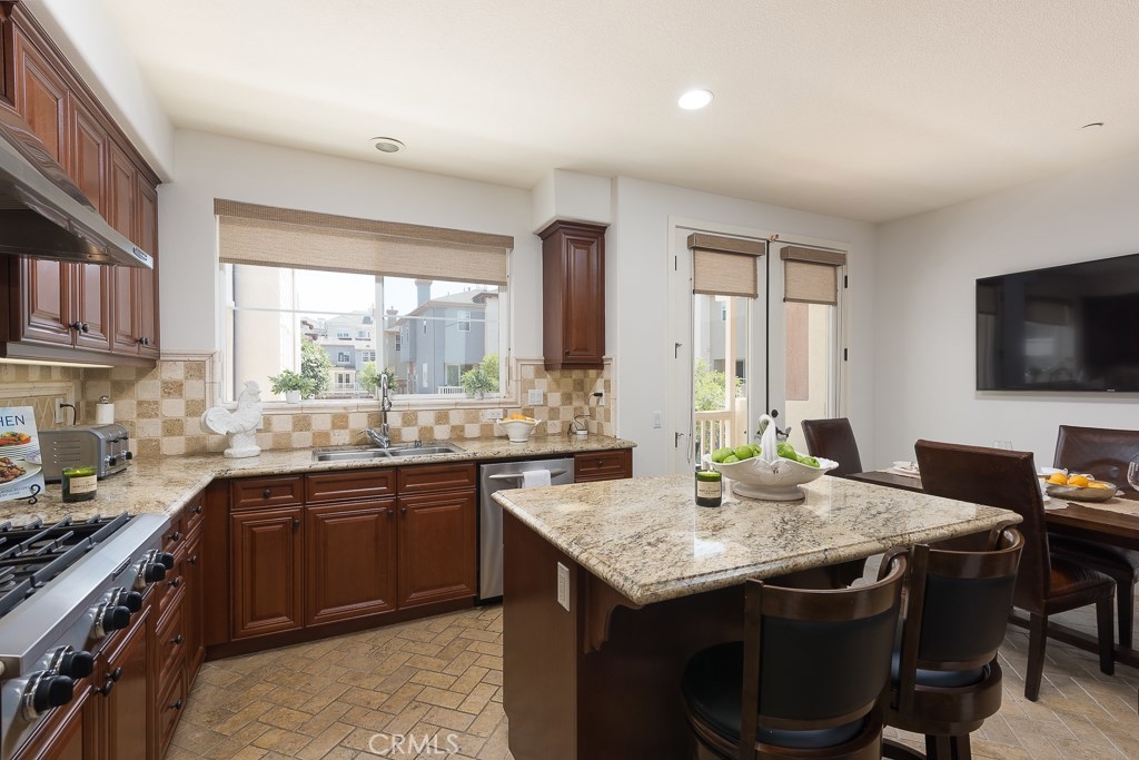 This stunning end unit Town Home in Tapestry I is filled with light and has been beautifully upgraded. Inside you will find designer details throughout that define the ultimate in luxurious urban living. The entry flows into a gorgeous living room perfect for entertaining with soaring 20' ceilings and formal dining room perched slightly above. Proceed beyond the dining room to the gourmet kitchen with its own private balcony and features stone counter tops and back splash, stainless steel appliances, dining nook area, custom cabinetry with built in office space and walk in butler's pantry. Upstairs you will find the restful master retreat with fireplace, elegant master bathroom with stone counters and flooring, large walk in closet, and private balcony surrounded by beautiful mature trees and open space. There is an additional private guest room with ensuite bath. The lower level offers a private family room/ den area perfect for watching movies and sporting events. There is a separate laundry room that leads into the 2 car garage with custom built in storage space. Tapestry is an intimate neighborhood in the heart of Play Vista only minutes to Loyola Marymount University, LAX, Marina Del Rey, Playa Del Rey and numerous dining and shopping venues. The residents of Tapestry also enjoy the amenities of the Center Pointe club, which has a gym, pool and business center. 5701 Kiyot Way #9, is not just an address, it is the quintessential Southern California Lifestyle.