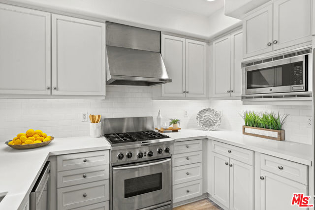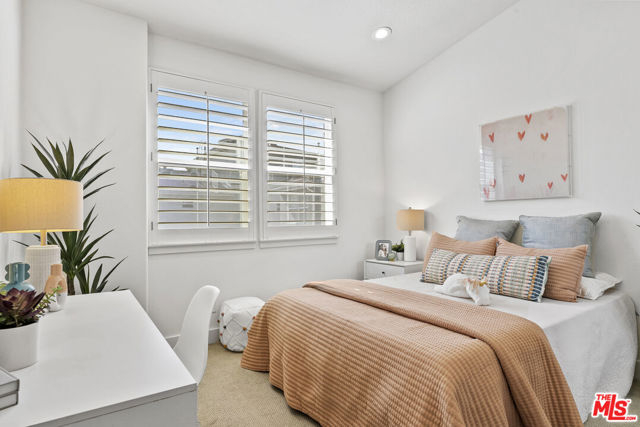 Beautifully updated Tapestry II coveted Plan B townhome. Upon entering the front door, a sun-filled, double-height living room with tall windows sets the tone. Step up to a dedicated dining space and continue to the family room, which is perfect for entertaining or lounging with built-in entertainment equipment storage, gas fireplace with a large wall above for a TV, as well as adjacent balcony. Open to the family room, the refreshed kitchen features newer white cabinetry, quartz countertops, Kitchen Aid stainless appliances, and a large picture window overlooking the balcony. Powder room located on the main level as well. Upstairs are three bedrooms, all with high ceilings and large windows. The spacious primary suite has an updated bath with separate shower and soaking tub, plus walk-in closet, and the two additional bedrooms share a hall bath. Full laundry room off of the garage on the lower level. Private 2-car garage with direct-entry features a Tesla universal EV charger and large bonus room plus additional crawl space storage. Other recent updates include LVP flooring in the living areas, fresh paint, and new LED recessed lighting. HOA dues cover cable, internet, alarm monitoring, and earthquake insurance. Prime interior setting facing a quiet courtyard, one block to Concert Park and close to Runway and The Resort. Enjoy Playa Vista's amazing lifestyle amenities including pools, fitness centers, parks, sports courts, playgrounds, and steps to shopping, entertainment, and dining.
