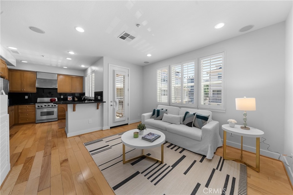 Welcome to Silicon Beach, home to Google, Facebook, YouTube, IMAX, Verizon, Fox Sports, Samsung, WeWork, Tencent, and much more! 6011 Dawn Creek #7 is a split-level townhome located in the beautiful and quiet Tapestry II community (only 50 units in total) with direct private garage access. Ultra-high 13' ceiling and giant windows welcome you as you enter the living room, with a beautiful bronze chandelier lighting up the dining area. Hardwood maple floors cover the entire living, dining, family, and kitchen areas. The family room features a fireplace and an exit to the balcony overlooking the courtyard. Built-in ceiling speakers were installed in the living room, dining room, and family room for your entertainment. The upgraded kitchen features granite countertops, stainless steel appliances, and lots of storage spaces. Brand new carpets all over from the 2nd floor stairs up. The top floor includes a master suite with 11' high ceiling and ceiling speakers, large windows looking out, spacious bathroom with separate tub and shower, and a walk-in closet. The other two good-sized bedrooms share a hallway full bathroom. A private garage with direct access is in the lower level, connected to the laundry area (washer & dryer included) and an extra hideaway bonus room plus a 15' x 15' finished crawl space for storage. There is a 220V outlet in the garage for your EV charging. Brand new laminate flooring was recently installed on the stairs from the laundry area going up to the family room. Newer HVAC, kitchen appliances, and brand new tankless water heater. The townhome is conveniently located near Concert Park, Runway shops and restaurants, The Resort (gym & pool exclusively for residents), Whole Foods Market, Starbucks, movie theatres, dog park and much more. Concert Park provides lots of outdoor activities such as concerts, movies, beach parties, food trucks and more in the summer. Runway Farmer's Market takes place each Saturday, rain or shine, from 9am to 2pm. HOA includes earthquake & flood insurance coverage.