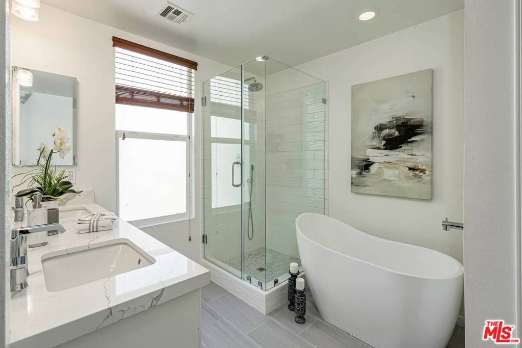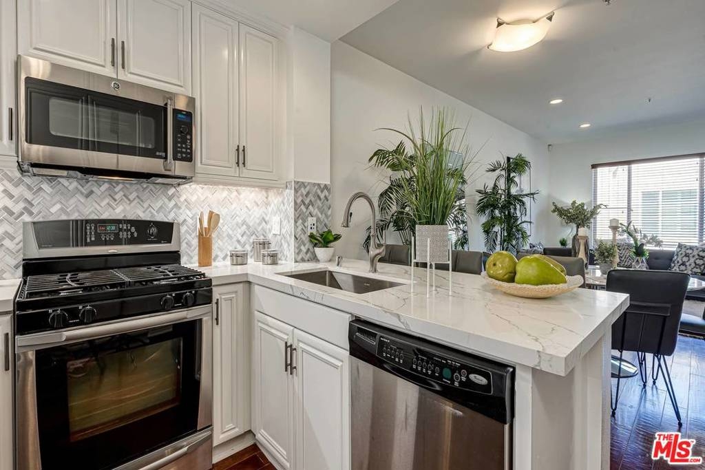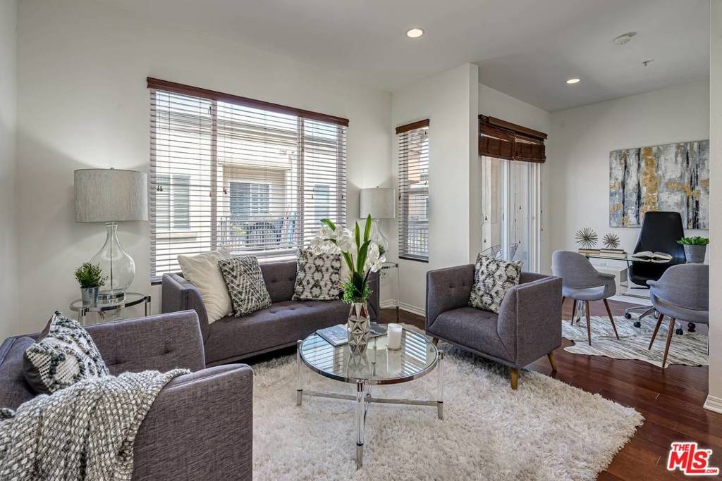 Top-floor Playa Vista townhome boasts an open layout, versatile living space, and central location in the heart of Silicon Beach's bustling tech scene. Step inside to find the high-end kitchen located off of the entrance, granite counters, premium stainless-steel appliances, and hardwood flooring that extends throughout the main level. The kitchen conveniently overlooks the living & dining area to entertain your guests as you prepare savory dishes that demand seconds! A bonus space off of the living area makes for an ideal office or den with access to the balcony. Retreat to the lower level to find your well-appointed master suite, boasting a large walk-in closet and a custom en suite with a separate enclosed shower. A junior master suite completes the lower level and features its own en suite with custom tile finishes. Additional features:prime location above retail shopping and dining spots, access to Playa Vista's multiple amenities, beach, prestigious local schools, parks & paths.