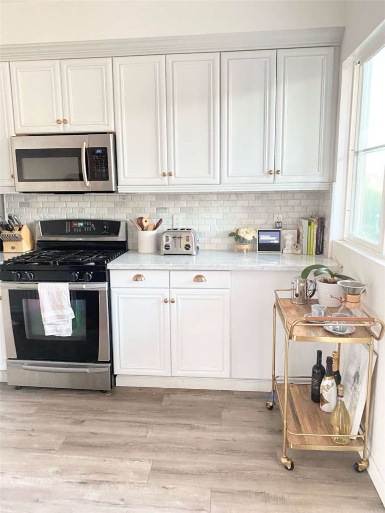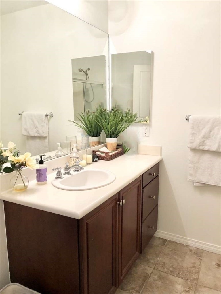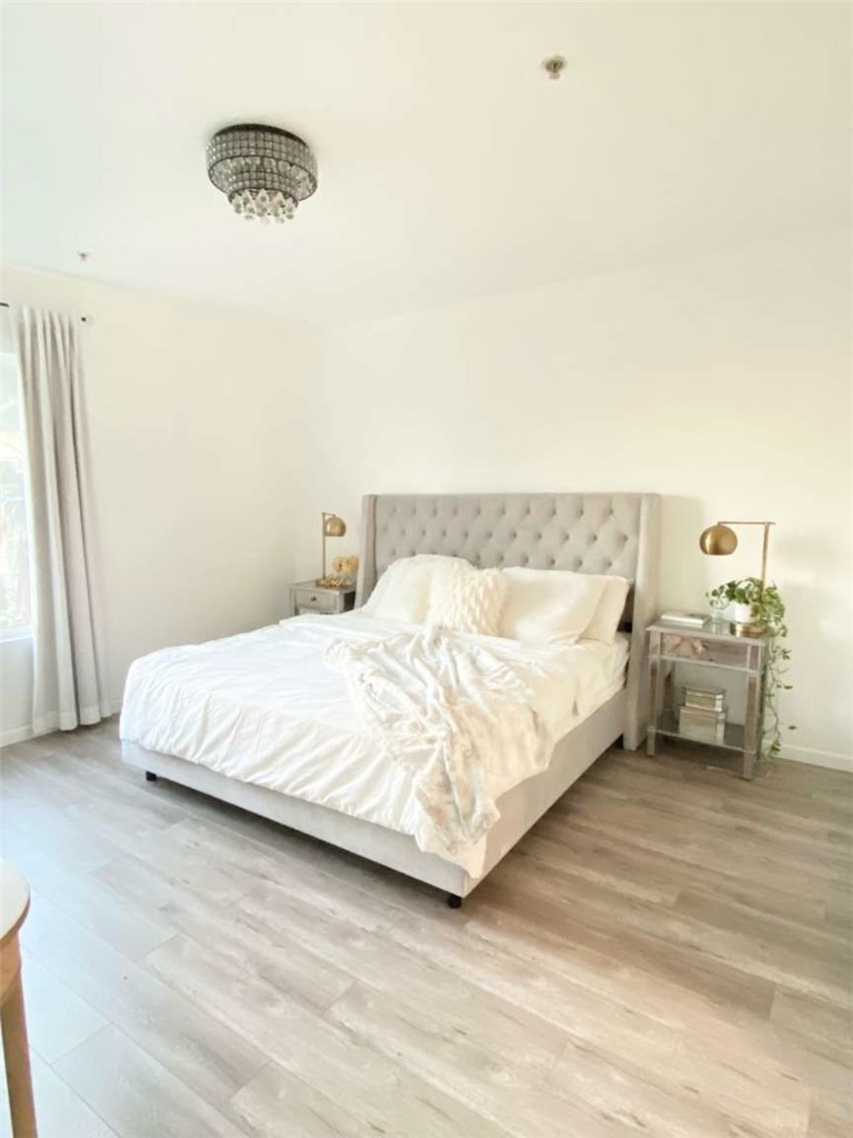 Located on the third floor, this 2 bed 2 bath corner unit has been extensively remodeled with laminate flooring and the kitchen has been renovated with Carrera marble countertops, brushed copper hardware, and white cabinetry. The master bedroom flows into a stunning remodeled bathroom with dual vanities, Carrera marble countertops, marble backsplash, stand up shower and relaxing freestanding tub. The unit also features an in-unit washer/dryer, two reserved spaces side by side and guest parking.