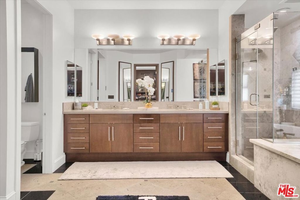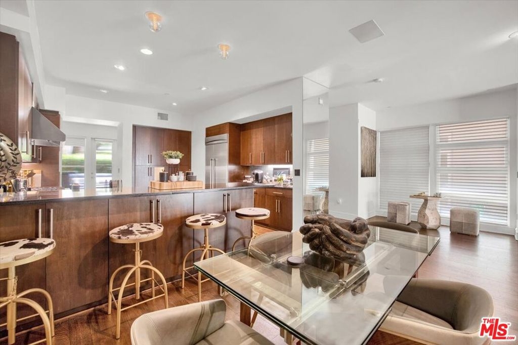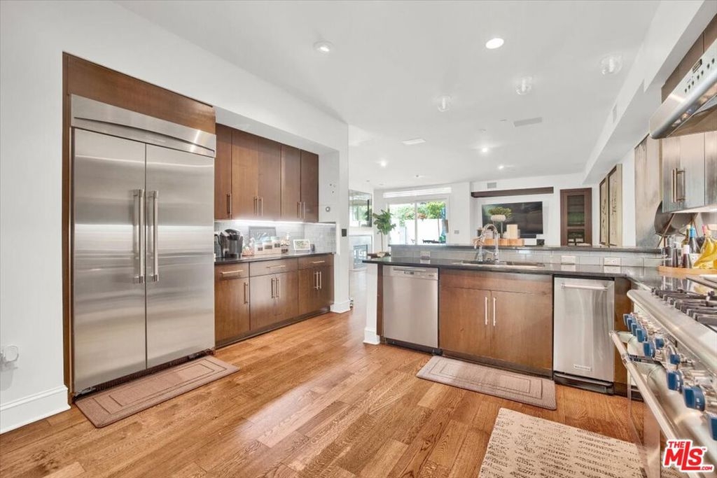 Embark on an enchanting journey through this exquisite prime real estate gem in the esteemed Playa Vista. This contemporary sanctuary boasts three bedrooms, 3.5 bathrooms, and a lavish blend of opulence and sophistication within the vibrant heart of Playa Vista, also known as Silicon Beach. A culinary haven awaits in the chef's kitchen, adorned with Thermador appliances, bespoke cabinetry, granite countertops, a dishwasher, and two wine fridges, promising unparalleled entertainment for your esteemed guests. Fresh sliding glass portals and polished hardwood pathways grace the ground level. Immerse yourself in technological marvels with the Savant home automation system, Vantage lighting, an Axis security system with 11 vigilant eyes, and a harmonious Sonos sound system spanning four zones. Embrace year-round comfort with two Nest thermostats and a dual-zone air conditioning system, ensuring a blissful atmosphere regardless of the outside elements. Convenience reigns supreme with a two-car garage offering seamless entry and an exclusive deeded parking slot. Revel in the luxury of two charming patios on the ground floor, perfect for soirees, and a rooftop deck beckoning for sun-drenched moments. The primary suite, a sanctuary fit for nobility, unveils a meticulously crafted walk-in closet, an intimate fireplace, a private balcony, a sumptuous soaking tub, dual sinks crowned with limestone countertops, and a wine fridge. The third floor unveils two bedrooms and a family room, promising ample space for every cherished member of your household. As a dweller of this abode, luxuriate in a grandeur lifestyle, with access to a community pool, gym, basketball courts, a dog park, and many lavish amenities.