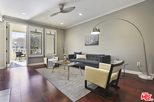 A true must see! Most sought after location for natural light and outdoor living space in the Metro building. This two-story west facing unit feels more like a townhouse than a condo and is as stylish as it is comfortable. The custom-built wood shutters are split-level adjustable to allow for complete privacy without compromising on natural light. Solid hardwood floors throughout are complimented by energy efficient recessed lighting and ceiling fans to offset the need to run the central A/C. The spacious master suite is a relaxing retreat complete with a large soaker tub and custom walk-in closet. The home features a gourmet kitchen, dining room and flex space which could be converted into a 3rd bedroom or used as a den/office/playroom. This unit has two sunlit patios, a rarity in Playa Vista, allowing for year round enjoyment of the view of Crescent Park. Quiet, and far removed from the noise of Lincoln and Jefferson.