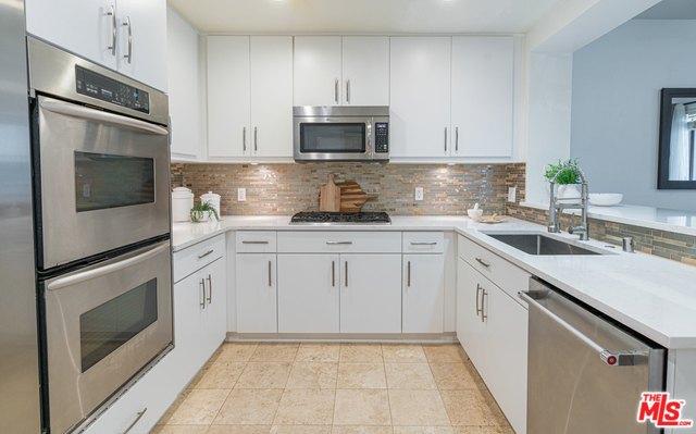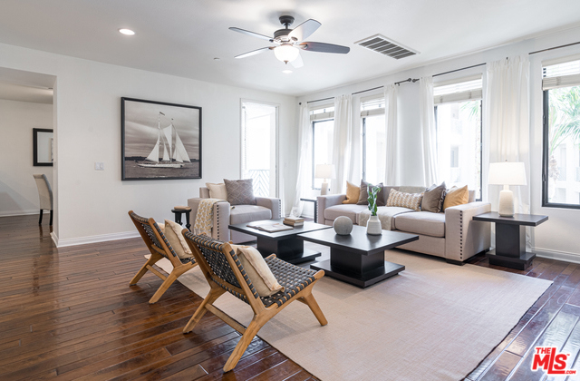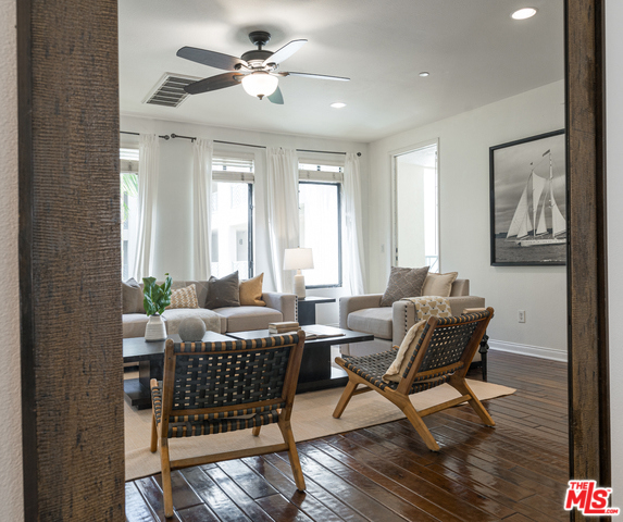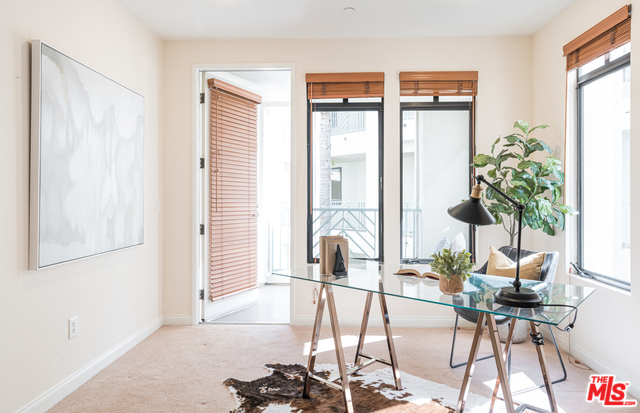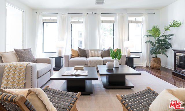 Welcome to the chic art deco Metro building! This beautiful single level 2 bedroom 2 bath condo with good size office nook is located in the heart of Silicon beach. It's a quiet courtyard facing corner unit with a spacious open floor plan that features a formal entry, living room with a gas fireplace and rich dark hardwood floors. Recently renovated kitchen boasts new cabinets, quartz counter tops and elegant glass/stone back splash. The unit offers two patios, one off of the dining room perfect for dining alfresco and other just off the master suite. Pristine master amazes with its size and has enough room for a sitting area or home office and offers en-suite bathroom with convenient dual vanity and travertine floors; a custom build walk- in closet. Tandem parking space #207. Live the Playa Vista life style! Enjoy the state of the art Resort - fitness center, Center Pointe Club.
