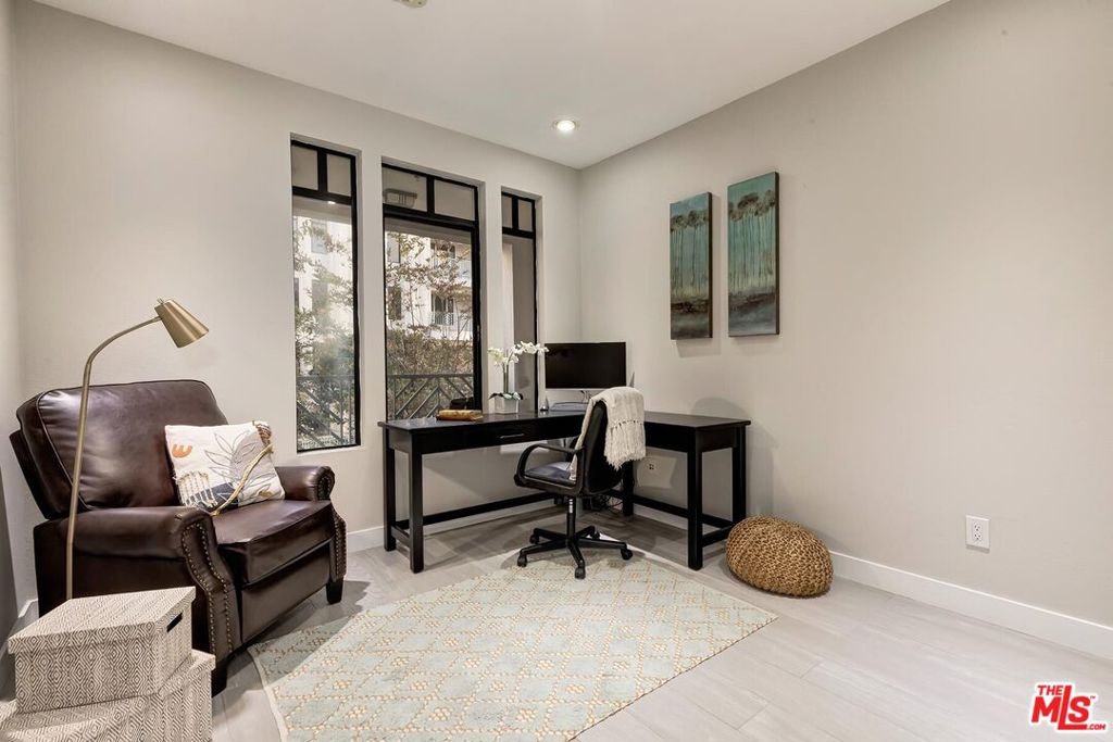 Welcome to your dream home in the vibrant Metro community of Playa Vista, nestled beside the picturesque Crescent Park. Step through the inviting circular foyer and discover a sleek single-story residence that perfectly balances elegance, comfort, and style. Designer lighting and beautiful italian slate flooring sets the tone for the home's refined atmosphere. The open-concept dining and living areas flow seamlessly, including a cozy fireplace and media nook, and overlook the serene interior courtyard. Step out to the spacious balcony ideal for enjoying your morning coffee or unwinding in the evening with views of the sunset. The kitchen is a chef's delight, featuring granite countertops, a travertine backsplash, ample cabinetry space, stainless steel appliances, and a cozy breakfast nook. Retreat to the generous primary suite, offering an en-suite bath with double sinks, a soaking tub and shower combo, and updated cabinets. The second bedroom and bathroom is ideal for children, guests or a den/office space. Additional features include a new HVAC system, two side-by-side parking spaces, in unit laundry, ring doorbell, and a private walk in storage closet, located directly next to the condo. As part of the Playa Vista community, you'll enjoy access to world-class amenities: the Center Pointe Club with resort-style pools, fitness centers, parks, a library, an elementary school. Enjoy nearby walking and bike trails, trendy restaurants, multiple parks, Whole Foods, Cinemark Movie Theater and Playa Del Rey beaches just a short bike ride away. Don't miss out on the opportunity to be a part of this vibrant community.