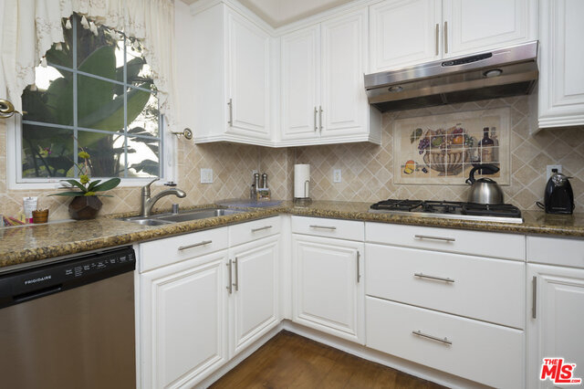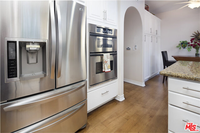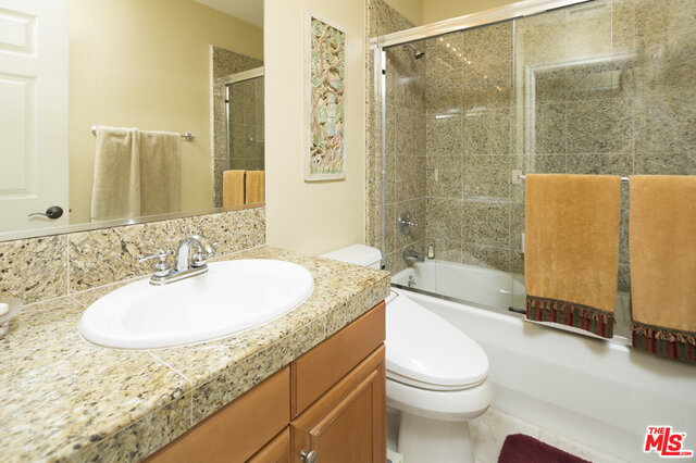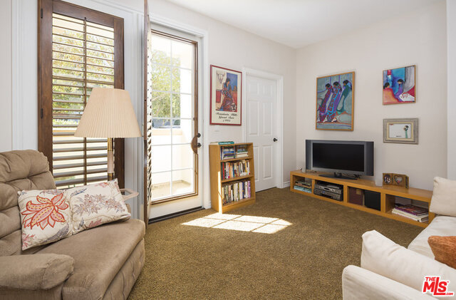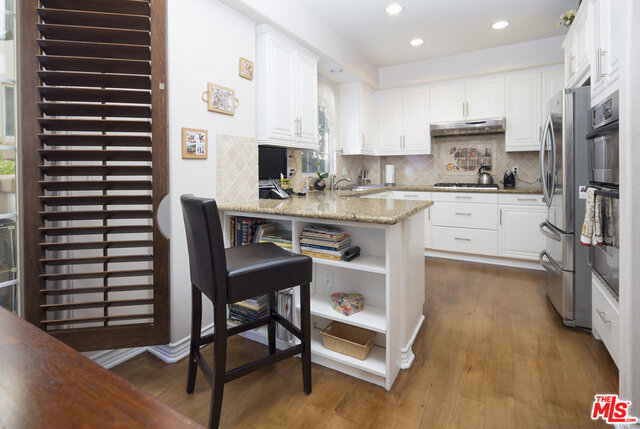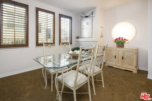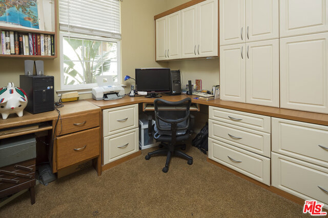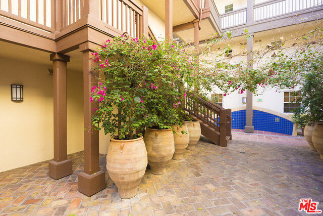 Rare floor plan in the elegant & intimate 39 unit Villa d'Este. Entry opens to large living room with fireplace and sunny, South-facing private patio overlooking the beautiful courtyard. Continue to kitchen featuring hardwood floors, white cabinets, granite countertops, breakfast nook, pantry, and another patio. Down the hall are an additional dining area and downstairs park-facing bedroom with third patio and full bathroom. Upstairs hallway features hardwood floors that lead to three more bedrooms (one is legally an office with built-in desk and shelving), two more full baths, and laundry room. Spacious master retreat has Juliet balcony and features en-suite bathroom with dual sinks and walk-in closet. Ample storage throughout and additional private storage unit in garage. Villa d'Este is located across the street from the Centerpointe Club and is a very short distance to numerous parks, Playa Vista Elementary School, Cinemark movie theater, and many exciting restaurants and shops.