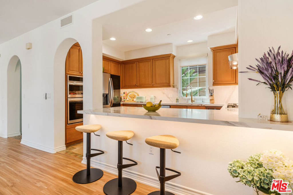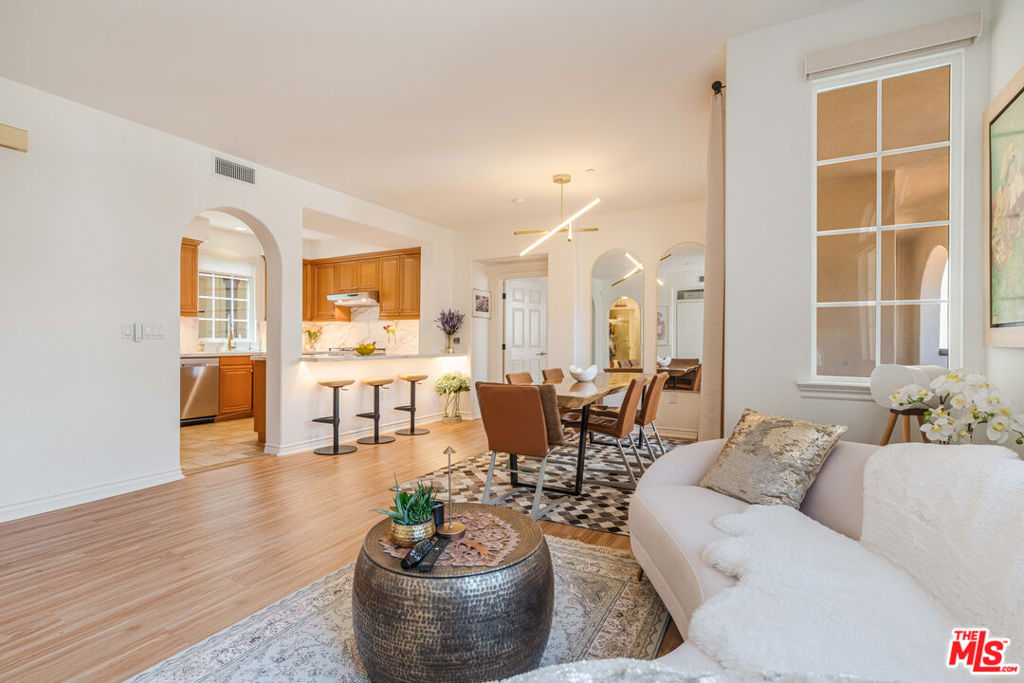 Welcome to this bright and beautifully laid-out single level home in the highly sought-after Villa d'Este community of Playa Vista. From the moment you step through the entry, you're greeted by an open and inviting floor plan that truly feels like home. This 2 bedroom, 2 bathroom home spans 1,260 square feet and offers a perfect blend of style and comfort. Sunlight pours through arched living room windows, showcasing peaceful courtyard views and filling the space with morning light. The kitchen is both functional and stylish, featuring thoughtful upgrades such as new quartz countertops, new refrigerator, oven and microwave, plus a wine fridge and a spacious peninsula that makes hosting effortless. Just off the dining area, French doors open to a large private balcony, an ideal spot for morning coffee or relaxing outside. The balcony also connects directly to the primary suite for a lovely indoor-outdoor flow. In the primary suite, you'll find a spa-like ensuite bathroom complete with upgraded countertops, modern fixtures, a frameless glass shower door, dual sinks, a soaking tub, and a separate walk-in shower. The secondary bathroom has also been beautifully updated with new countertops, a sleek new faucet, and a frameless shower door, providing a cohesive and elevated design throughout the home. The secondary bedroom is thoughtfully positioned on the opposite side of the home, offering privacy and a sense of calm. It's perfect for guests, a home office, or both. A custom built-in Murphy bed in the living adds versatility and provides an additional space for guests. Motorized blinds provide convenience to easily create even more privacy. With just 39 residences, Villa d'Este offers a boutique feel and lush surroundings, including three beautifully landscaped courtyards. This home is ideally located across from the Playa Vista CenterPointe Club and library, and just blocks from Playa Vista Elementary. Additional features include side-by-side parking with an EV charger and private storage in the subterranean garage, plus access to top-tier amenities like The Resort Health Club and CenterPointe Club. All this is just moments from the best of Playa Vista, including Whole Foods, Hopdoddy, the Cinemark theater, and more. This is your opportunity to live in one of Silicon Beach's most vibrant and connected communities!