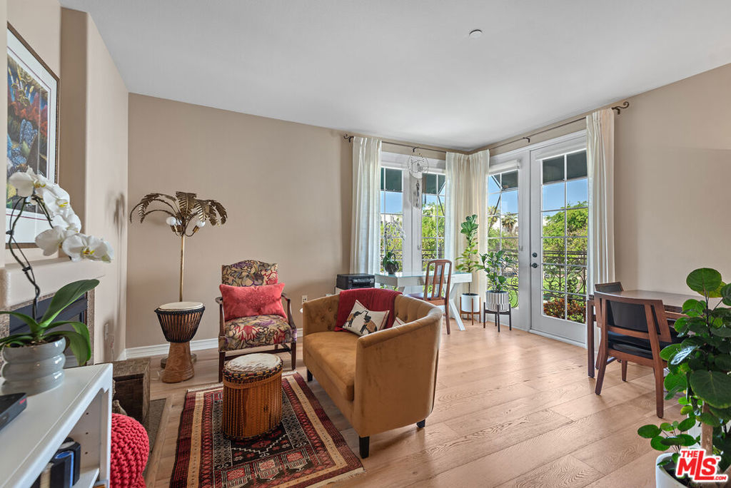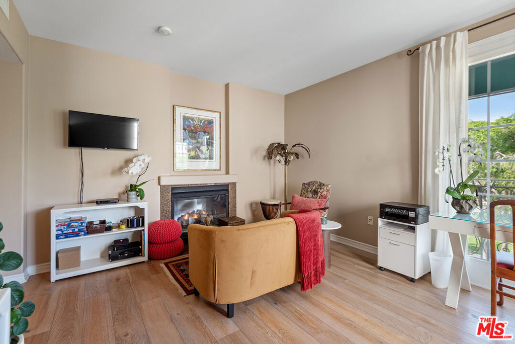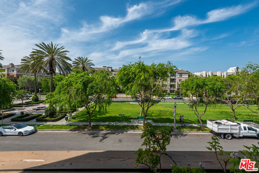 A one-of-a-kind, two-story corner residence with sweeping Crescent Park views from nearly every room, nestled in the heart of Playa Vista. Situated in the highly sought-after Villa d'Este, this bright and elegant residence spans approximately 1,980 square feet and offers 3 bedrooms and 3 bathrooms. Enter on the main level to find a beautifully updated chef's kitchen featuring stainless steel appliances, abundant cabinetry, generous counter space, and an eat-in bar. The kitchen flows seamlessly into the dining area with wide plank light hardwood floors. Adjacent to the dining room is the sophisticated living room with a double-sided fireplace and a wall of glass doors opening onto a private, spacious balcony-perfect for enjoying the coveted indoor-outdoor lifestyle and stunning park views. On the other side, a lovely family room showcases hardwood floors, a fireplace, and corner glass doors with a wrap-around Juliet-style balcony, which floods the space with natural light. The oversized primary suite is a true retreat, highlighted by soaring ceilings, a wall of arched windows overlooking the park, a walk-in closet, and a spa-like en suite bathroom with dual vanities, a glass shower, a soaking tub, and an adjacent cozy library. From the library, ascend to the upper level to find an additional bedroom with pitched ceilings and its own spacious en-suite bathroom. Additional features include a third well-appointed bedroom and bathroom, in-unit laundry, ample storage, high ceilings, tons of windows and natural light, and three private parking spaces. All of this in a prime Playa Vista location, just moments from The CenterPointe Club, The Resort, Runway shopping, and so much more.
