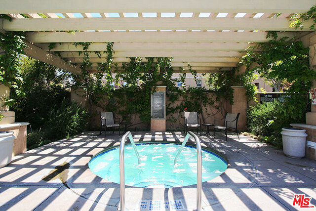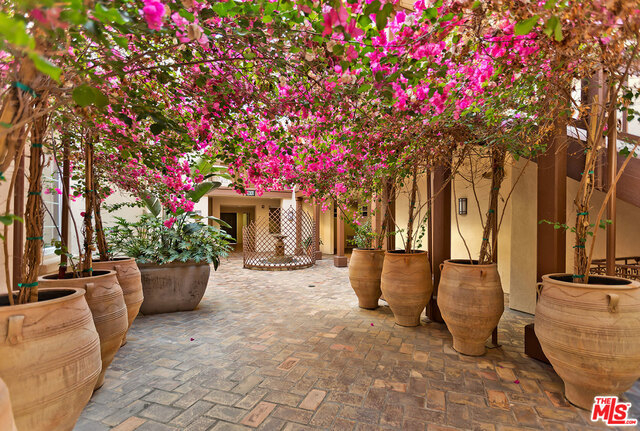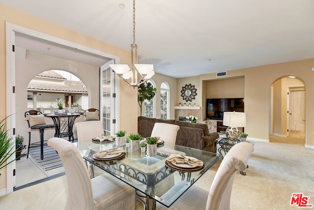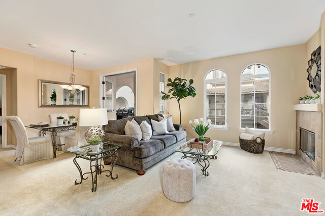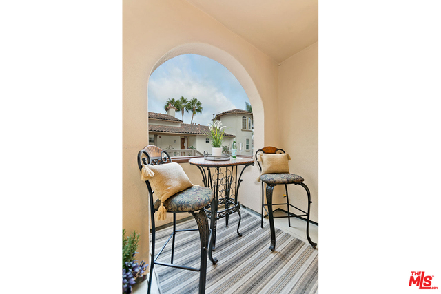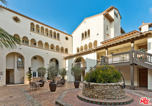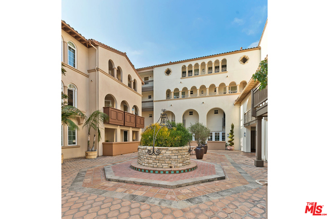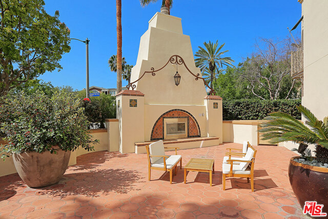 This serene condo is special. Set in the exclusive Villa D'Este, you'll share the classic SoCal life with just 38 neighbors, ensconced in Spanish Colonial architecture and Hacienda-style courtyards. This second-floor gem teems w/ charm. Listen to the sound of the outdoor fountain as you step into the tiled foyer. Thanks to East-facing arched windows, morning sun streams into the open-plan living area w/ cozy fireplace. The kitchen boasts quartz counters, newer SS appliances & breakfast bar. But the standout is the oversize 130 SF balcony, perfect for indoor-outdoor living, w/gas BBQ hookup and generous seating. Enjoy morning coffee, dinner w/ friends, or a sunset glass of wine in this airy, covered spot w/ peaceful courtyard views. The master suite boasts a large closet, fresh bath and separate shower w/ stone floor, and French doors to the balcony. 2nd bedroom w/bath. A short walk to gym & pool. With only one shared wall, this is a tranquil spot to retreat from the rigors of city life