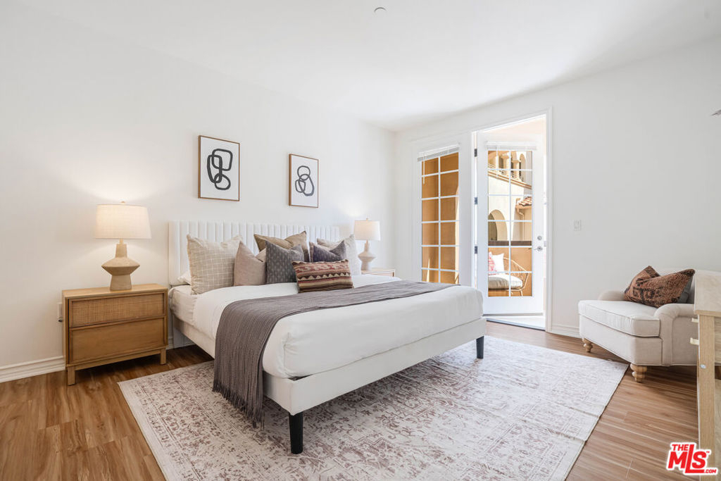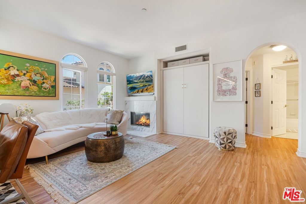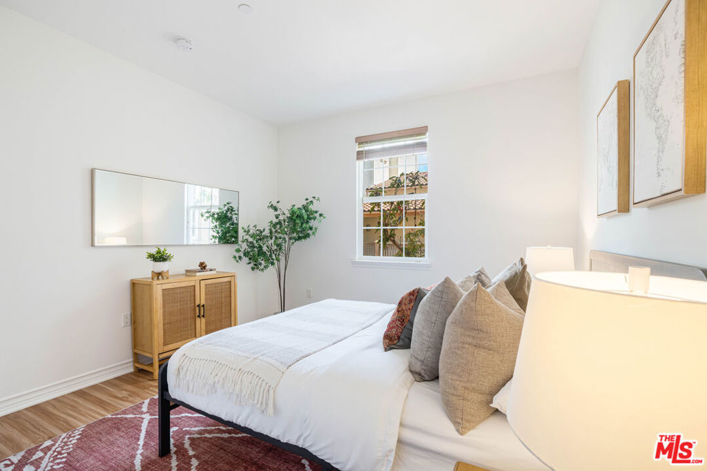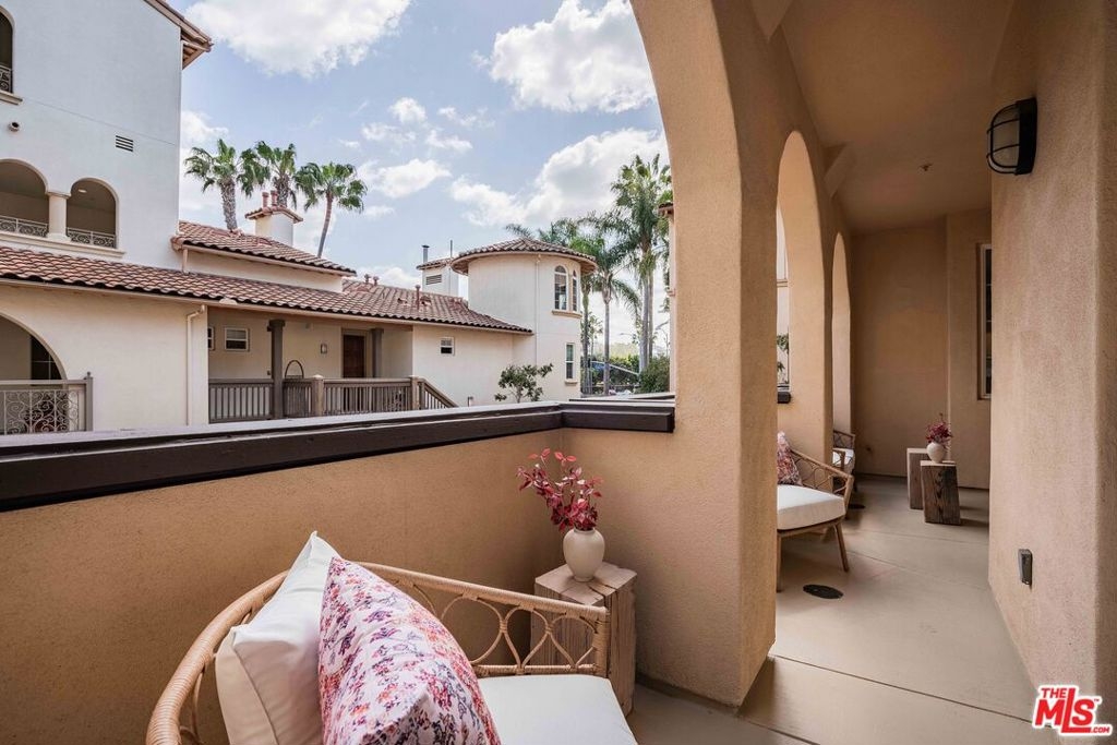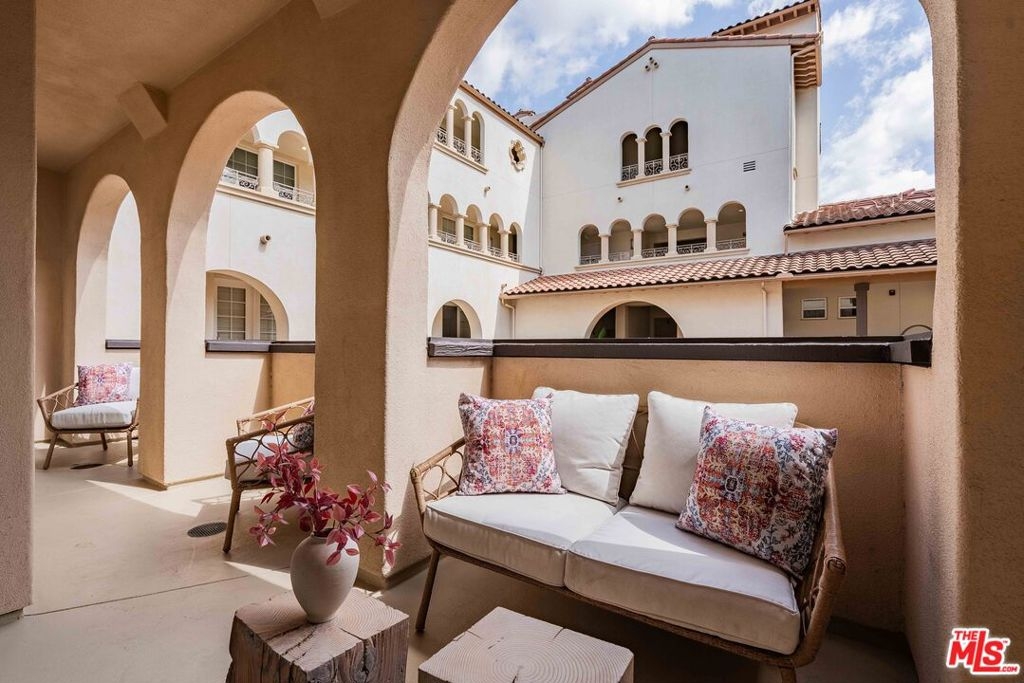 Welcome to this bright and beautifully laid-out single level home in the highly sought-after Villa d'Este community of Playa Vista. From the moment you step through the entry, you're greeted by an open and inviting floor plan that truly feels like home. This 2 bedroom, 2 bathroom home spans 1,260 square feet and offers a perfect blend of style and comfort. Sunlight pours through arched living room windows, showcasing peaceful courtyard views and filling the space with morning light. The kitchen is both functional and stylish, featuring thoughtful upgrades such as new quartz countertops, new refrigerator, oven and microwave, plus a wine fridge and a spacious peninsula that makes hosting effortless. Just off the dining area, French doors open to a large private balcony, an ideal spot for morning coffee or relaxing outside. The balcony also connects directly to the primary suite for a lovely indoor-outdoor flow. In the primary suite, you'll find a spa-like ensuite bathroom complete with upgraded countertops, modern fixtures, a frameless glass shower door, dual sinks, a soaking tub, and a separate walk-in shower. The secondary bathroom has also been beautifully updated with new countertops, a sleek new faucet, and a frameless shower door, providing a cohesive and elevated design throughout the home. The secondary bedroom is thoughtfully positioned on the opposite side of the home, offering privacy and a sense of calm. It's perfect for guests, a home office, or both. A custom built-in Murphy bed in the living adds versatility and provides an additional space for guests. Motorized blinds provide convenience to easily create even more privacy. With just 39 residences, Villa d'Este offers a boutique feel and lush surroundings, including three beautifully landscaped courtyards. This home is ideally located across from the Playa Vista CenterPointe Club and library, and just blocks from Playa Vista Elementary. Additional features include side-by-side parking with an EV charger and private storage in the subterranean garage, plus access to top-tier amenities like The Resort Health Club and CenterPointe Club. All this is just moments from the best of Playa Vista, including Whole Foods, Hopdoddy, the Cinemark theater, and more. This is your opportunity to live in one of Silicon Beach's most vibrant and connected communities!