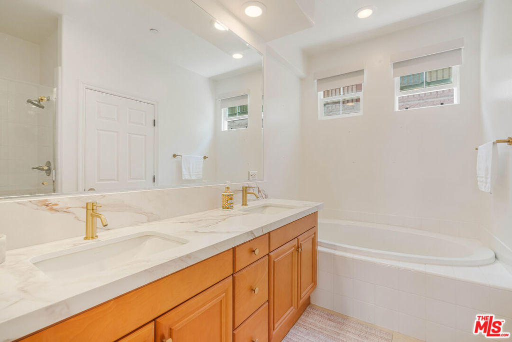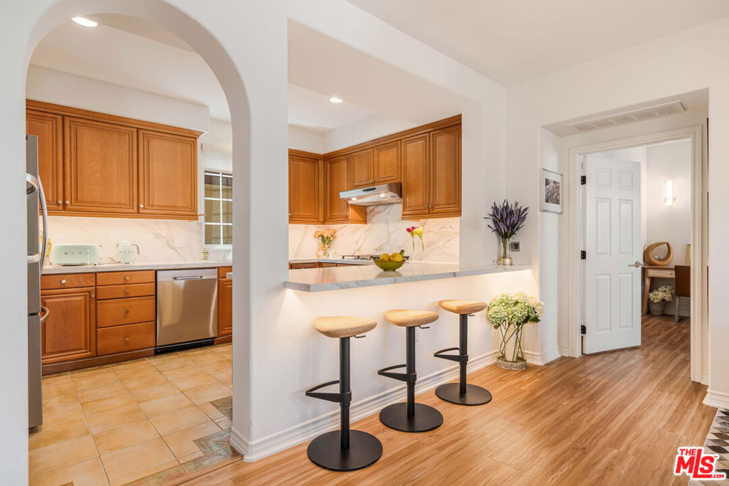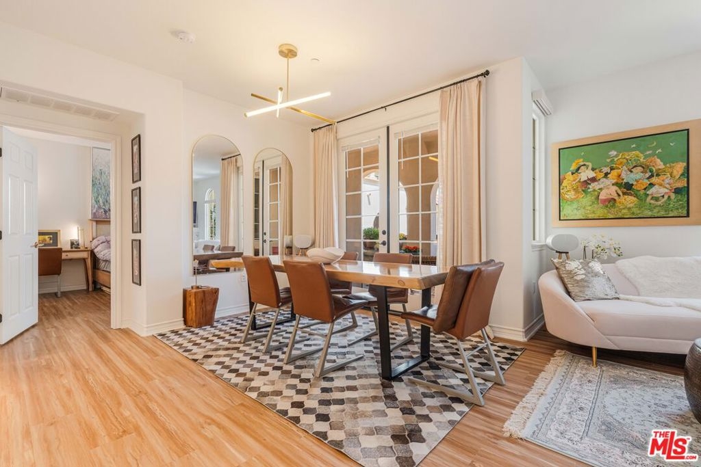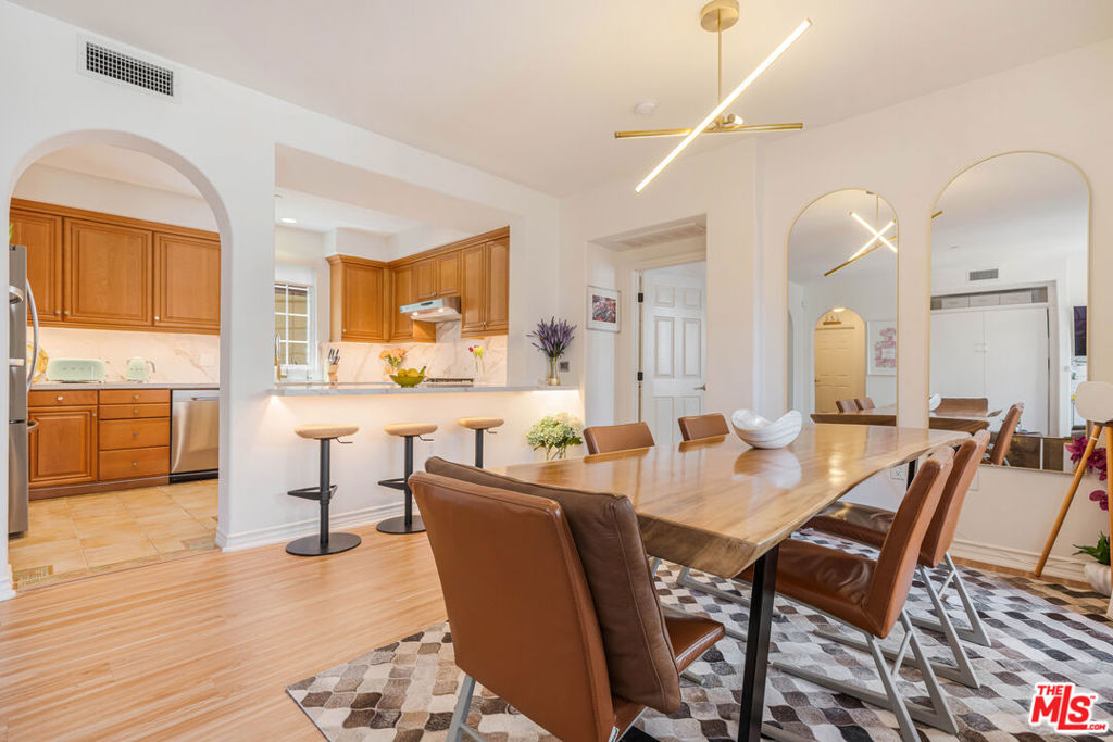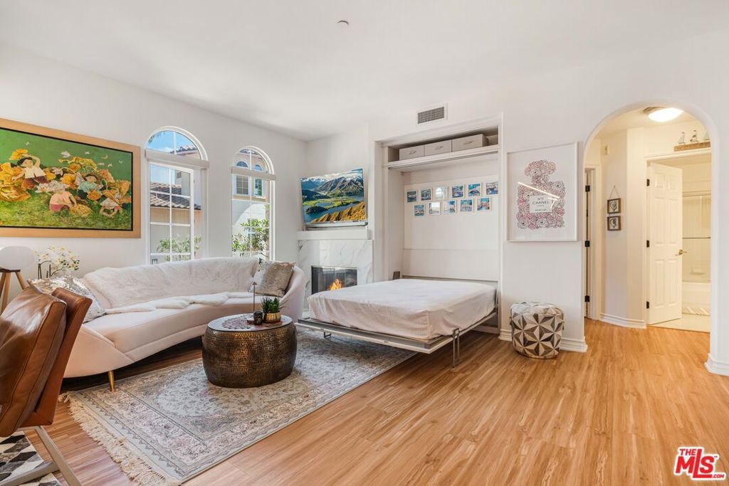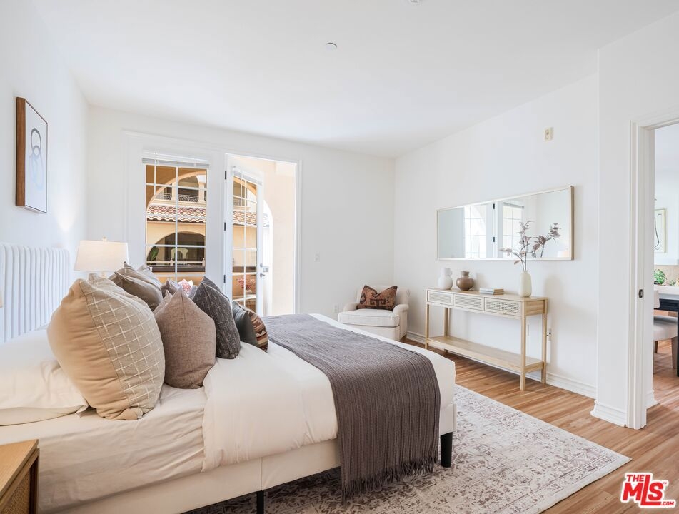 Welcome to this bright and beautifully laid-out single level home in the highly sought-after Villa d'Este community of Playa Vista. From the moment you step through the entry, you're greeted by an open and inviting floor plan that truly feels like home. This 2 bedroom, 2 bathroom home spans 1,260 square feet and offers a perfect blend of style and comfort. Sunlight pours through arched living room windows, showcasing peaceful courtyard views and filling the space with morning light. The kitchen is both functional and stylish, featuring thoughtful upgrades such as new quartz countertops, new refrigerator, oven and microwave, plus a wine fridge and a spacious peninsula that makes hosting effortless. Just off the dining area, French doors open to a large private balcony, an ideal spot for morning coffee or relaxing outside. The balcony also connects directly to the primary suite for a lovely indoor-outdoor flow. In the primary suite, you'll find a spa-like ensuite bathroom complete with upgraded countertops, modern fixtures, a frameless glass shower door, dual sinks, a soaking tub, and a separate walk-in shower. The secondary bathroom has also been beautifully updated with new countertops, a sleek new faucet, and a frameless shower door, providing a cohesive and elevated design throughout the home. The secondary bedroom is thoughtfully positioned on the opposite side of the home, offering privacy and a sense of calm. It's perfect for guests, a home office, or both. A custom built-in Murphy bed in the living adds versatility and provides an additional space for guests. Motorized blinds provide convenience to easily create even more privacy. With just 39 residences, Villa d'Este offers a boutique feel and lush surroundings, including three beautifully landscaped courtyards. This home is ideally located across from the Playa Vista CenterPointe Club and library, and just blocks from Playa Vista Elementary. Additional features include side-by-side parking with an EV charger and private storage in the subterranean garage, plus access to top-tier amenities like The Resort Health Club and CenterPointe Club. All this is just moments from the best of Playa Vista, including Whole Foods, Hopdoddy, the Cinemark theater, and more. This is your opportunity to live in one of Silicon Beach's most vibrant and connected communities!