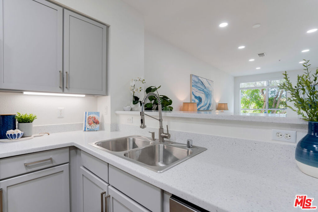 Beautiful renovated home at Waterstone in Playa Vista with a corner location, incredible windows, and gorgeous treetop and bluff views! This 1 bedroom 1 bathroom home offers amazing natural light and a great open layout. You will love the updated kitchen with new stainless steel appliances, beautiful modern gray cabinetry and bar seating. The living room and dining area offers great open treetop views and recessed lighting throughout. Wake up with views of the bluff in your light and bright spacious bedroom. The walk-in closet has been built out. The expansive bathroom is modern and clean. Includes central air and in unit washer and dryer. 2 tandem parking spaces included in the subterranean parking garage. Blocks away from Playa Vista Elementary School and Library! Nearby, Runway at Playa Vista is home to Whole Foods, Cinemark Movie Theater, restaurants, shops & more! Includes access to the state of the art Resort and the Centerpointe Club's gym and pool.
