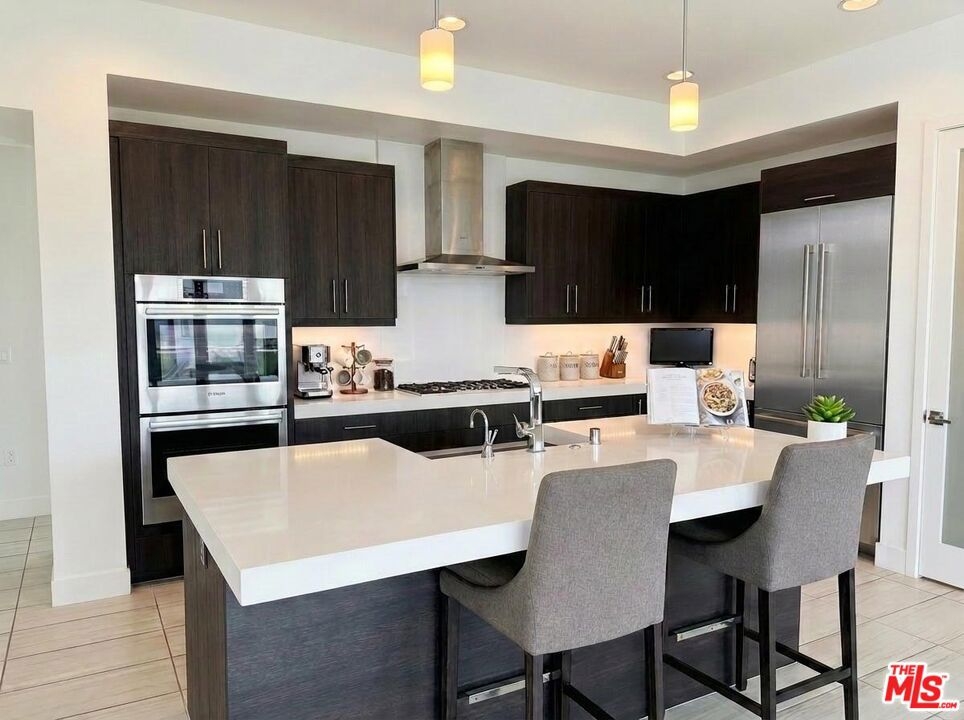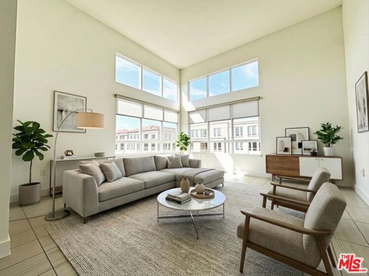 Rare single-level penthouse occupying the entire top floor of a boutique 3-unit building in Playa Vista's coveted Skylar community, featuring a private elevator entry and private 2-car garage. This bright west-facing residence features soaring ceilings, contemporary finishes, and an open-concept living, dining, and kitchen layout that flows seamlessly to a covered patio overlooking a beautiful grassy park. The sleek kitchen features Bosch appliances and modern cabinetry, ideal for both everyday living and entertaining. Enjoy the privacy of a single-level home with no neighbors above or beside you, with each residence occupying its own floor. Residents have access to Playa Vista's incredible resort-style amenities, including multiple pools (lap and recreation), state-of-the-art fitness centers, tennis and pickleball courts, basketball courts, dog parks, playgrounds, and scenic walking trails. Located walking distance from Playa Vista's shops, restaurants, cafes, and entertainment, this home offers an exceptional combination of luxury, privacy, and convenience.