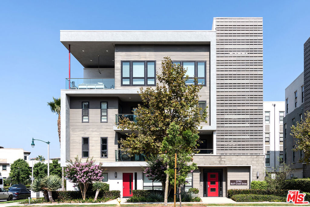 Location, Location, Location - Arguably the Best 4 bedroom luxury condo in Playa Vista with the best location!! Welcome home to this incredibly spacious Bluff view south-facing Cleo plan 3, a 4 bed 3.5 bath 2-story condo that has it all. With nearly 2700 sq ft and $250k in upgrades. it offers a unique design w/ only 3 units in the building, . Direct street access, direct access from your private 2-car garage & access from the building elevator to your main level. South-facing unobstructed views of the bluffs provide privacy and ample natural light. Large accordion doors in the living room open up to the expansive outdoor deck. This luxury 2-story home has ground level suite with 1 bed, 1 bath but currently being used as a media room with custom built-ins. Upstairs on your main level there are 3 bedrooms and 2.5 bathrooms. Hardwood floors throughout. Top of the line appliances, two wine refrigerators and designer finishes. Centrally located in Playa Vista, just a short distance to all of the action including the many parks, play grounds, tennis courts, Runway retail, Farmers market, Resort Pool& fitness, Center point Club, fine dining and so much more. Located in one of the best kept secrets of LA County, Playa Vista. A planned community with everything you need to live a comfortable resort-like lifestyle.