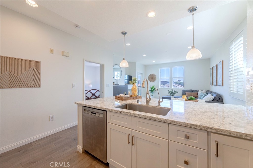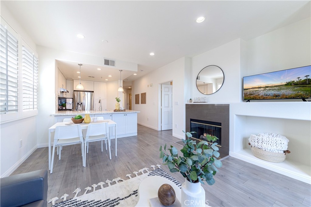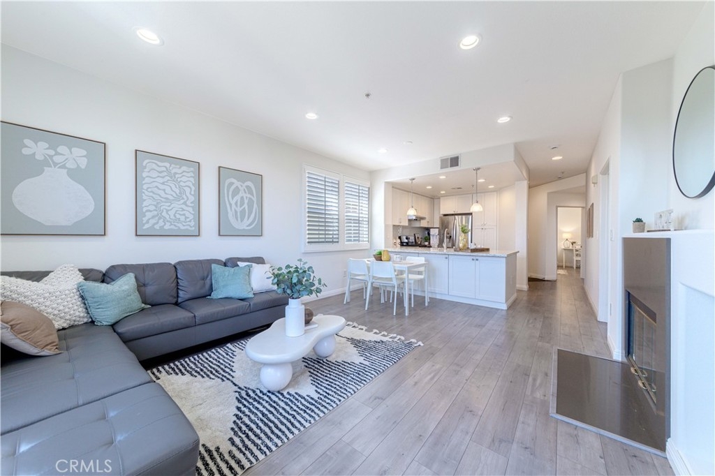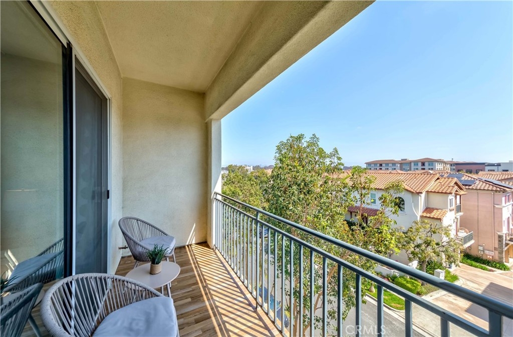 Welcome to a rare opportunity in one of Playa Vista’s most desirable communities. This impeccably maintained, top-floor, single-level condo offers the ultimate in privacy, tranquility, and style—perched on the 4th floor and attached on only one side. Step into a sun-filled sanctuary where natural light pours into a thoughtfully designed open-concept layout. The inviting living room, complete with a cozy fireplace, flows effortlessly into the dining area—perfect for relaxed living and effortless entertaining. The upgraded kitchen is both sleek and functional, featuring Quartz countertops, crisp white cabinetry, stainless steel and black appliances—including a brand-new stove—and a refrigerator included with the home. Door lead to a spacious private balcony, the ideal spot to sip your morning coffee or unwind with evening views of snow-capped mountains and twinkling city lights. The serene primary suite is a private retreat, offering direct balcony access, dual sinks, a soaking tub, generous linen storage, and a walk-in closet. Both bathrooms have been tastefully remodeled with modern features and finishes. Designer touches throughout the home, including laminate and tile flooring, recessed lighting, plantation shutters, fresh interior paint, and updated fixtures. Additional features include: In-unit laundry with stacked washer & dryer (included), central A/C and heating, two side-by-side parking spaces + private storage in secure garage. All this just steps from Concert Park and Playa Vista’s best amenities—and minutes from Marina del Rey, LMU, and LAX. As a resident, you’ll enjoy access to The CenterPointe Club’s resort-style pool, spa, fitness center, lounge, screening room, business center, and more. This is more than a home—it’s a lifestyle. Sophisticated, serene, and simply unforgettable.