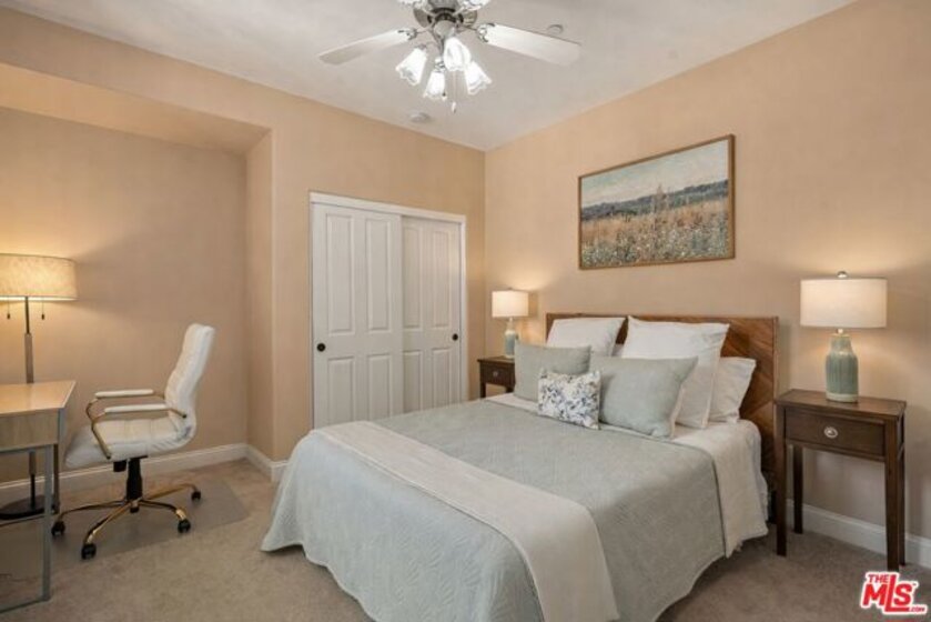 Welcome to 12975 Agustin Place #418, a stunning top-floor corner residence in Playa Vista's highly sought-after Carabela community. Bathed in natural light from its prime north-west exposure, this beautifully updated home offers an exceptional blend of comfort, style, and convenience. A formal entry leads into a bright and airy living room featuring soaring ceilings, a cozy gas fireplace, and seamless access to a spacious private balcony perfect for enjoying breathtaking city views and golden-hour sunsets. The open-concept layout flows effortlessly into a well-appointed kitchen, complete with stainless steel appliances, granite countertops, upgraded fixtures, and abundant storage. The adjacent dining area serves as a natural extension of the space, ideal for both casual meals and entertaining, with additional bar seating for added versatility. This thoughtfully designed home features two generously sized bedrooms, offering flexibility for guests, a home office, or both. The guest bathroom has been tastefully refreshed with updated hardware, shelving, and a modern vanity. The primary suite is a serene retreat, filled with natural light and complete with a spacious walk-in closet and a dual vanity bathroom. Additional highlights include a brand new in-unit washer and dryer, recessed lighting, double paned windows, and the privacy and tranquility of a top-floor corner location. Ideally situated just moments from Concert Park, Whole Foods, Cinemark, The Resort gym and pool, and an array of dining, shopping, and outdoor spaces, this home offers the very best of Playa Vista living.