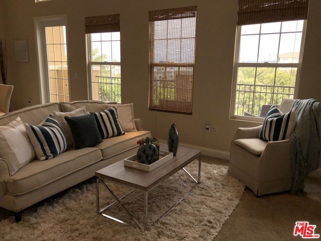 Incredible opportunity to live in the highly sought-after community of Playa Vista. Located in a quiet cul-de-sac, this top floor 2BR/2BA corner condo offers an inviting floor plan perfect for entertaining. Featuring an open and airy living/dining area with high ceilings, gas fireplace, built-ins and a large secluded balcony with mountain, city and LMU views. The large gourmet kitchen offers granite countertops, stainless steel appliances and an abundance of storage space. Kitchen opens to the dining area with easy pass through great while entertaining. The master bedroom has a large master bath with dual vanities, an over-sized walk-in closet, deep soaking tub, large clear glass shower, along with an enclosed toilet area. Walking distance to shops, boutiques and restaurants as well as the Saturday Farmer's Market. Enjoy entertainment in Concert Park and the world-class amenities of The Resort and The Centerpointe Club, state-of-the-art facilities complete with fitness centers, pools