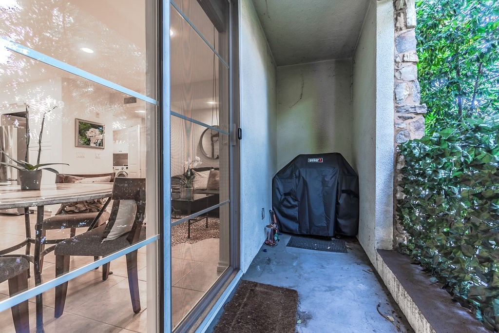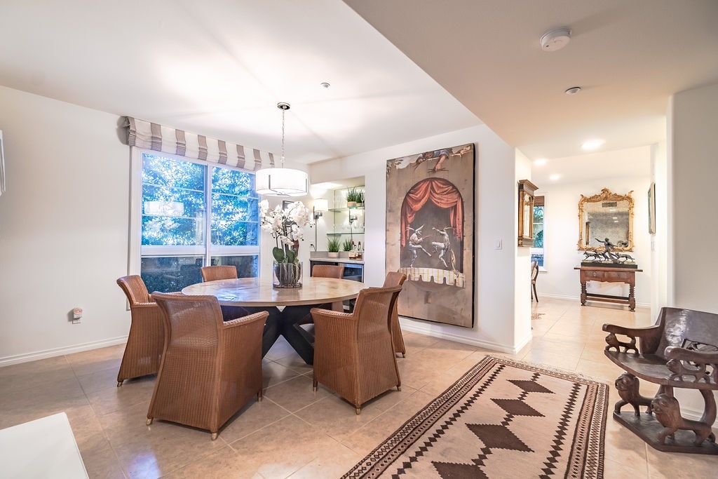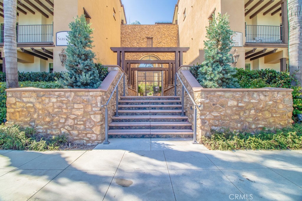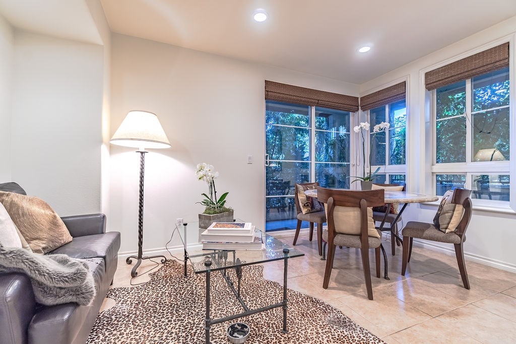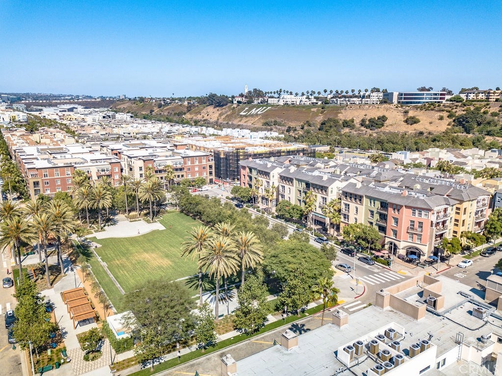 Spacious Serenade! Relaxation is easy with this comfortable corner unit residence conveniently located near side-by-side parking spaces. First level entry foyer opens into living room where you can just plop down at the end of a long day and enjoy the warming, see-through fireplace, shared with the adjacent dining room; with seating for six, chandelier, an attractive bar with granite countertop and wine refrigerator, enjoy memorable dinners with friends and family. Gather around the granite countertop kitchen island; plus additional dining area for four. Ceramic tile flooring on main level; with powder room, laundry closet, wraparound patio and storage. Artfully curved stairwell to second level master suite with wraparound balcony. Soothing master bathroom with soft touch travertine, soaking tub, and glass enclosed shower. Two sinks in both master suites with the third bedroom sharing the junior suite bathroom. Playa Vista amenities include access to pools and fitness facilities, library, parks and open space, and elementary school; with cable, high speed internet and water included in dues. Short walk to The Village, with Whole Foods, Starbucks, CVS, Cedars, movies and restaurants. This is your invitation to pleasurable moments in this fine home!