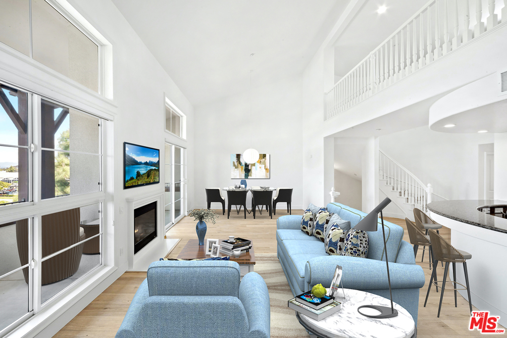 Stunning remodeled penthouse at Serenade Playa Vista! This gorgeous property with 2 story ceilings offers incredible light and amazing views. The huge entertainer's kitchen with beautiful white cabinets, stainless steel appliances and breakfast nook looks out to the open living area and beyond to the spacious balcony with views. Offering 2 bedrooms, 2.5 bathrooms plus loft spread over 1760 square feet. The upstairs spacious loft is great for an office, den or potential 3rd bedroom. Downstairs you will find 2 en-suite bedrooms separated by an expansive landing with incredible storage space and laundry. The master bedroom with private balcony flows into the master bath with dual vanities, separate shower and soaking tub. Close to the Playa Vista Centerpointe Club's gym, pool, spa and screening room. Nearby, Runway at Playa Vista is home to Whole Foods, Cinemark Movie Theater, restaurants, shops and more! Also includes access to the brand new Resort Fitness Center.